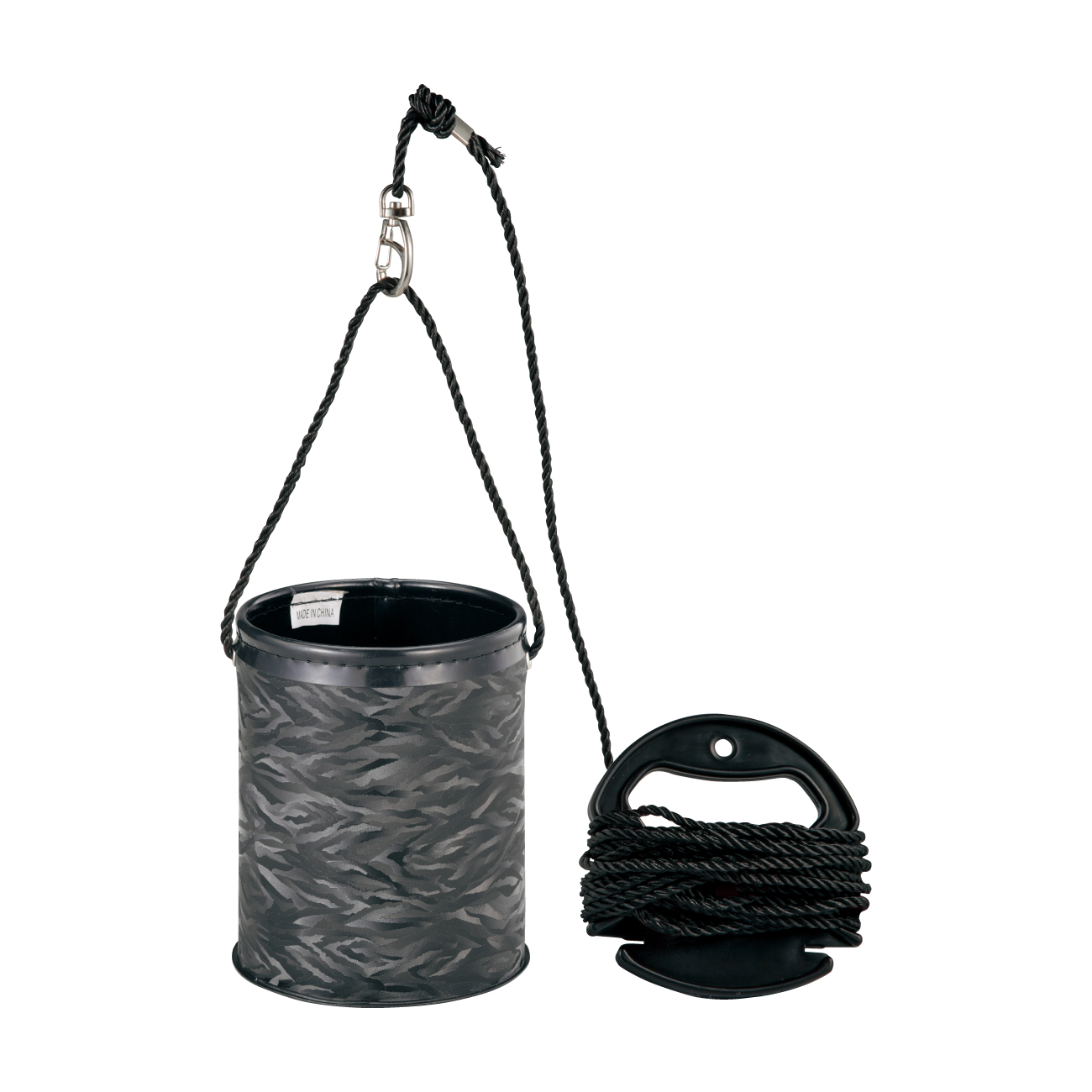 ●波止釣、エギング、ライトゲームなど移動の多い釣行に最適なポータブル水汲みバケツ。釣り座の掃除や、手を洗いたい時など、幅広いシーンで重宝します。