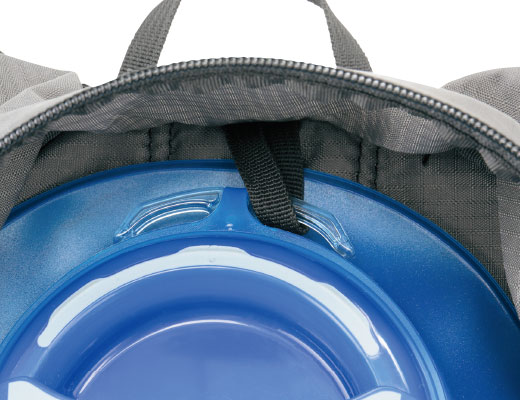 バッグポケットにハイドレーションシステムを配置。