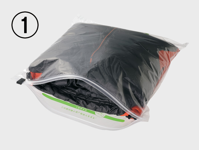 1.袋のチャックを開け、衣類を入れてください。