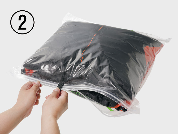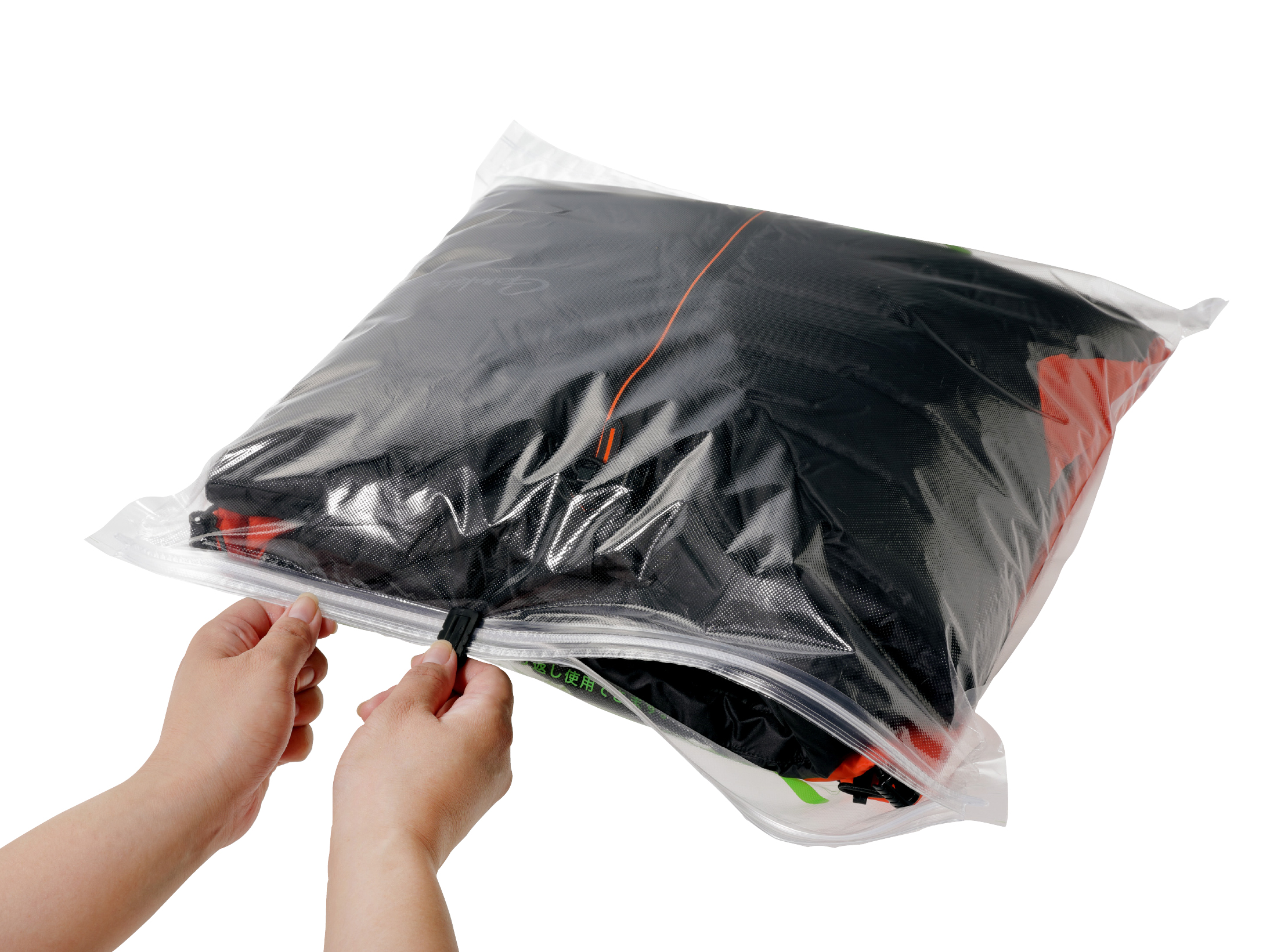 ※鋭利なものは袋の破れの原因となりますので、ファスナーやバックルなどはしっかりと閉め、できるだけ包み込むようにしてご使用ください。