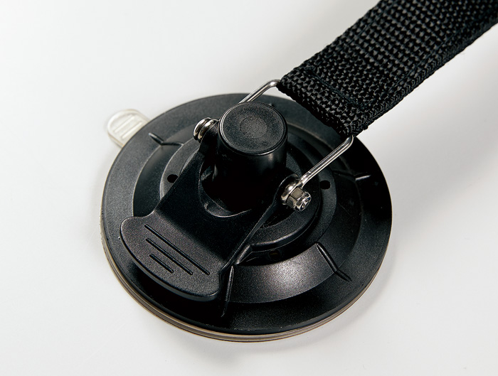 ●吸盤で車の側面ボディに簡易固定が可能。吸盤のレバーを押し込むことでしっかりと吸着します。吸盤は取り外し可能なバックル仕様。