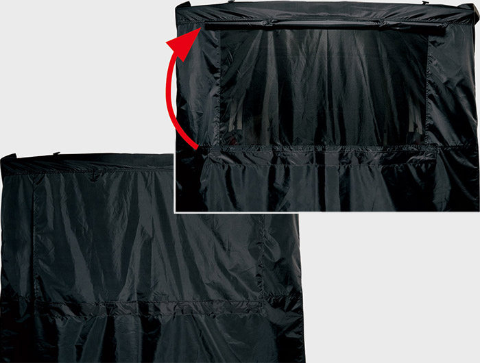 ●側面はサイドファスナーによりロールアップが可能。