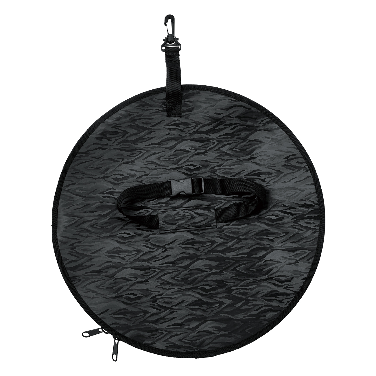 ●背面にはロッドケースなどに取り付けやすいベルトを装備。タモカバーのぶらつきを防止。