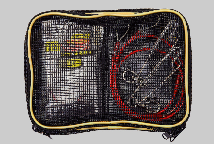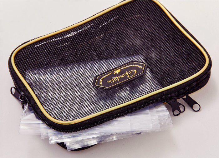 ●ワイヤー仕掛け、瀬ズレ仕掛けを分けてすっきりと収納でき、ストリンガーのパーツポーチとしても使用できる“仕掛け&ストリンガーポーチ”。