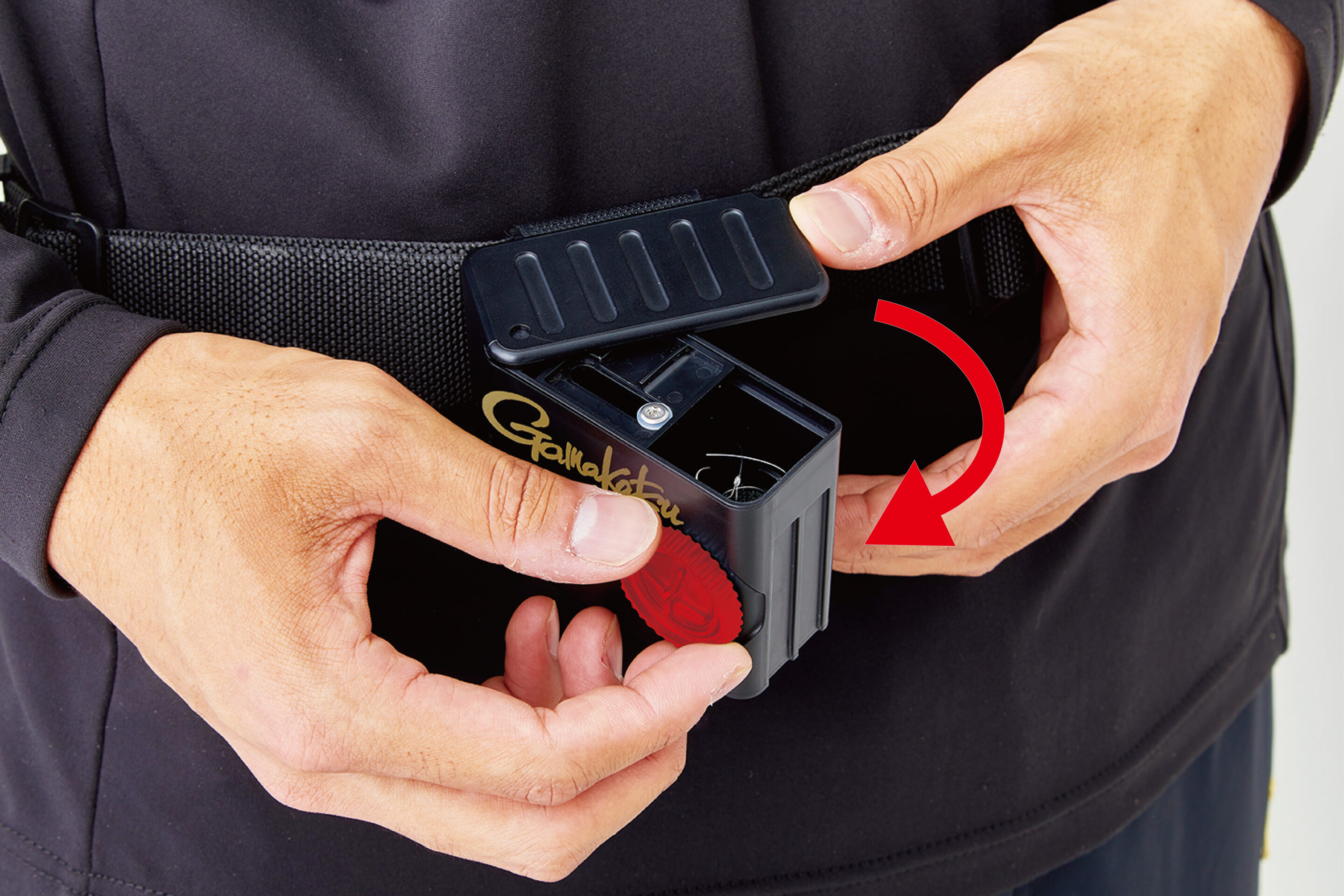 仕掛けなどが切れた際にはダイヤル層に設置している面ファスナーに絡めてダイヤルを回すことでスムーズに回収することが可能。