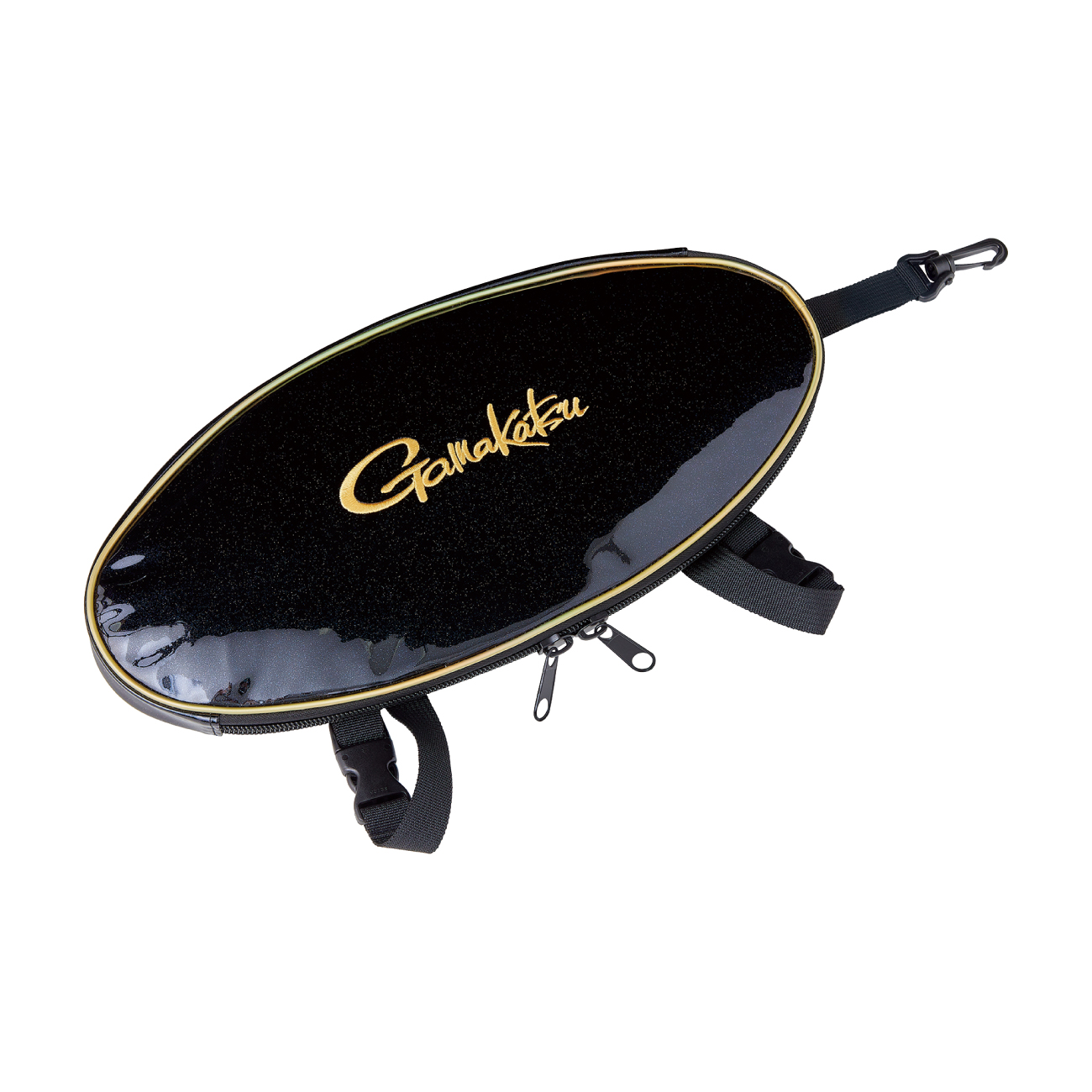 ●背面にはロッドケースなどに取り付けやすいベルトを装備。タモカバーのぶらつきを防止。