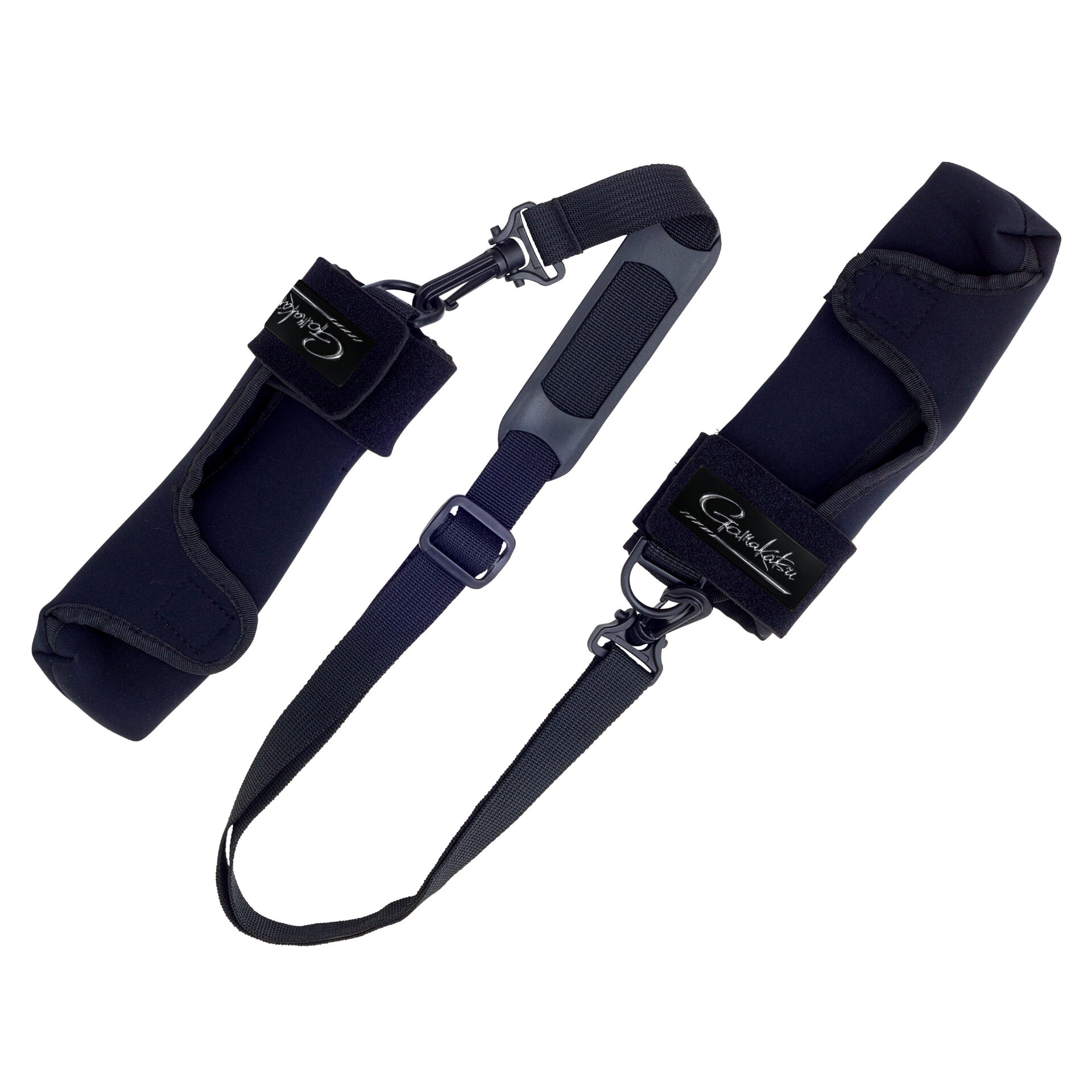 ●振出の竿はもちろん、並み継の竿等を持ち運ぶ際に便利。特に、ロッドケースに収まりにくい仕舞寸法の違う竿(磯竿とルアーロッドなど)を持ち運ぶ時にも大変重宝します。