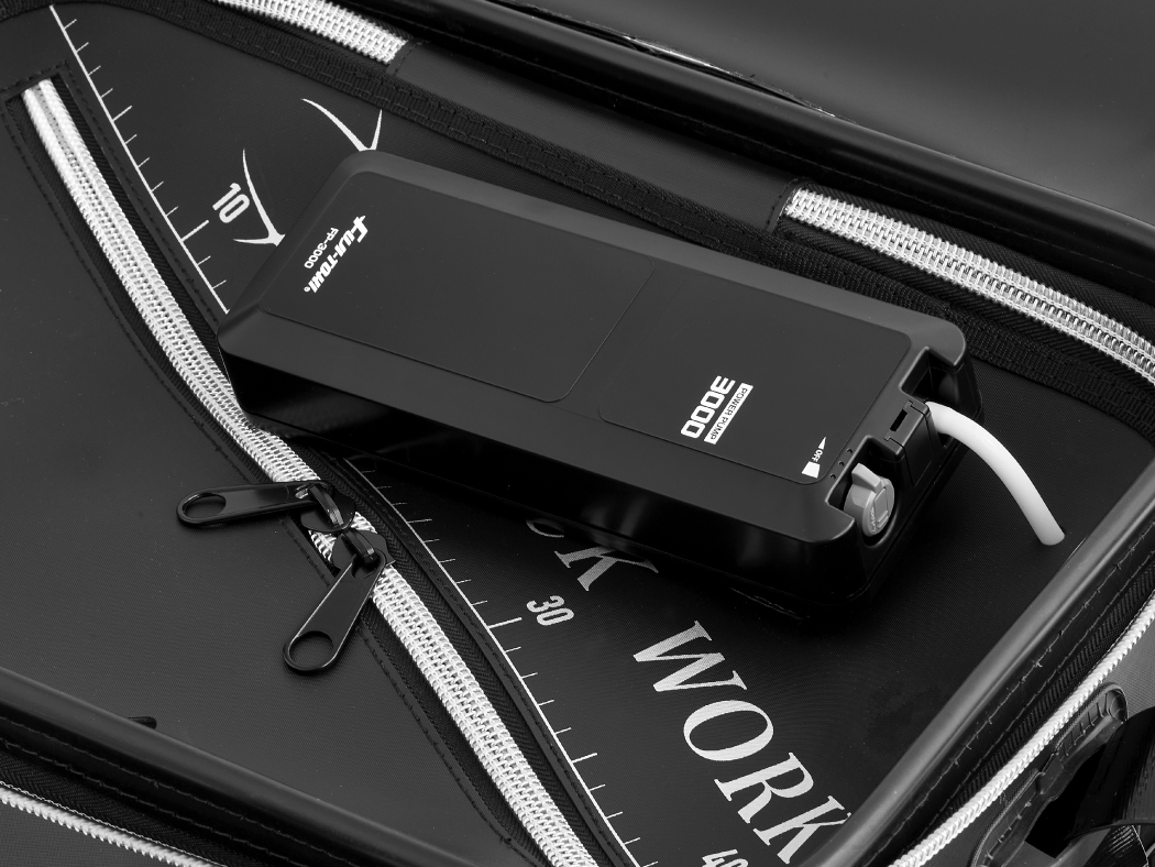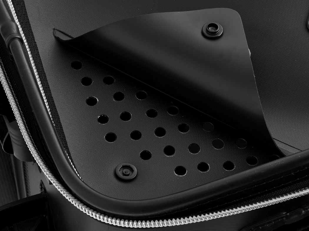 ●内蓋の上部にもポンプ保持のテープとホース穴を採用しているため最大で3基のエアポンプを使用することが可能です。