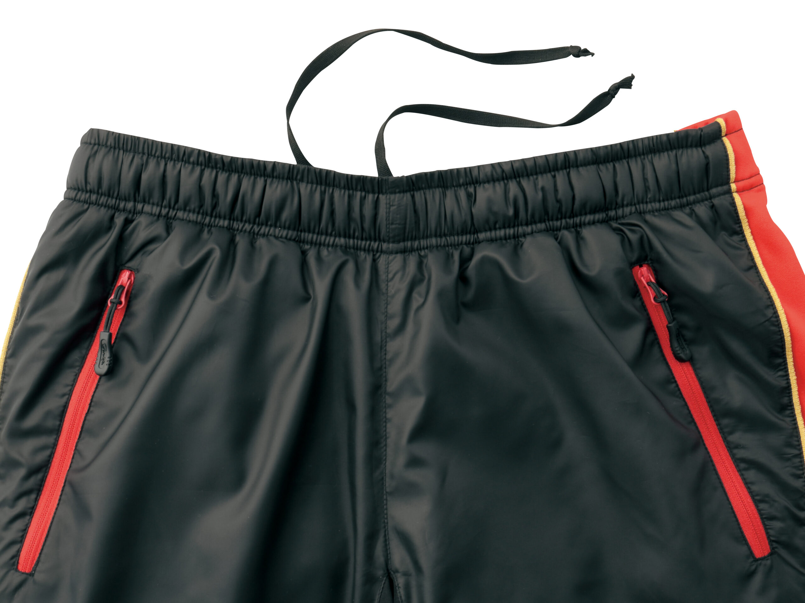 ●本体のウエスト部分と股部分、足裏側にストレッチ素材を配置しフィット感を向上しました。本体のサイドと股部のストレッチにより人間が発生する動きに追随しながらもウエストからヒップにジャストなフィット感を再現。足裏側にストレッチ素材を配置することで足の太さに関係なくジャストフィットが可能です。