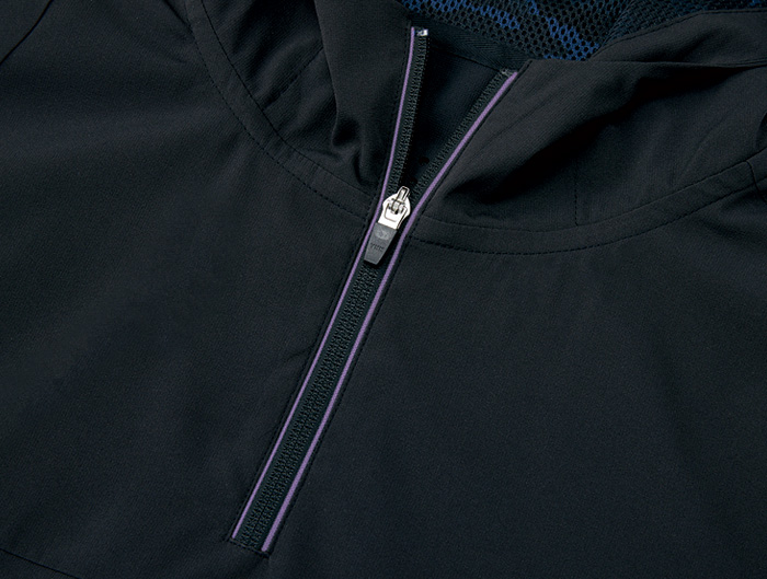 フロントジップには再帰反射プリントを採用。夜間や早朝の周りへの視認性をアップします。