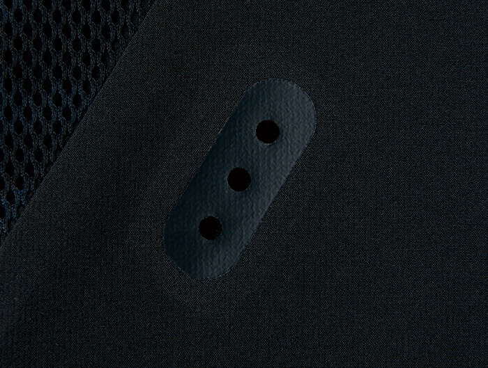 ●内部のベンチレーション効果を高める機能として、脇下と背中の冷却効果が高い場所にベンチレーションホールを配置。内部の熱を効率よく放出します。