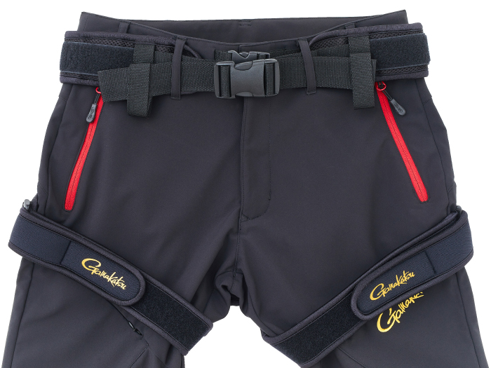 ウエストは取り外しができるアジャスターベルトでしっかりフィット。ヒップガード用フロントベルトループ付。
