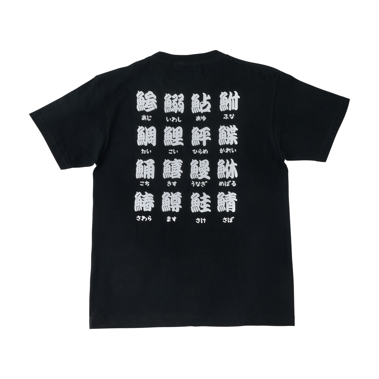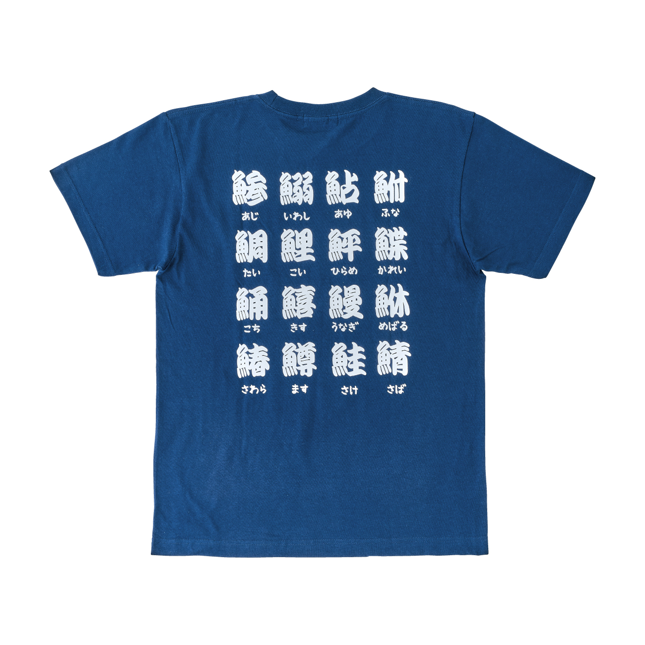 ●背中に漢字で魚の名前をプリント。お寿司屋さんの湯呑のイメージで遊び心を盛り込みました。
