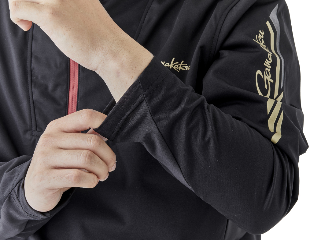 ●特殊カッティングパターンを採用して釣行時の腕の動きに追従します。
