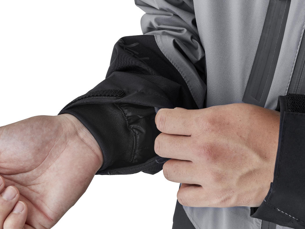 ●袖口には面ファスナーでの調整機能とインナーカフ仕様で袖口からの水の侵入を軽減。