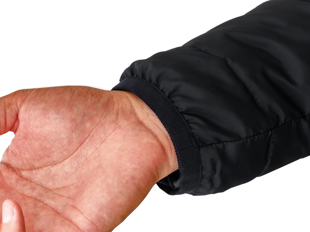 ●袖口はニット生地パイピングで手首にフィット。