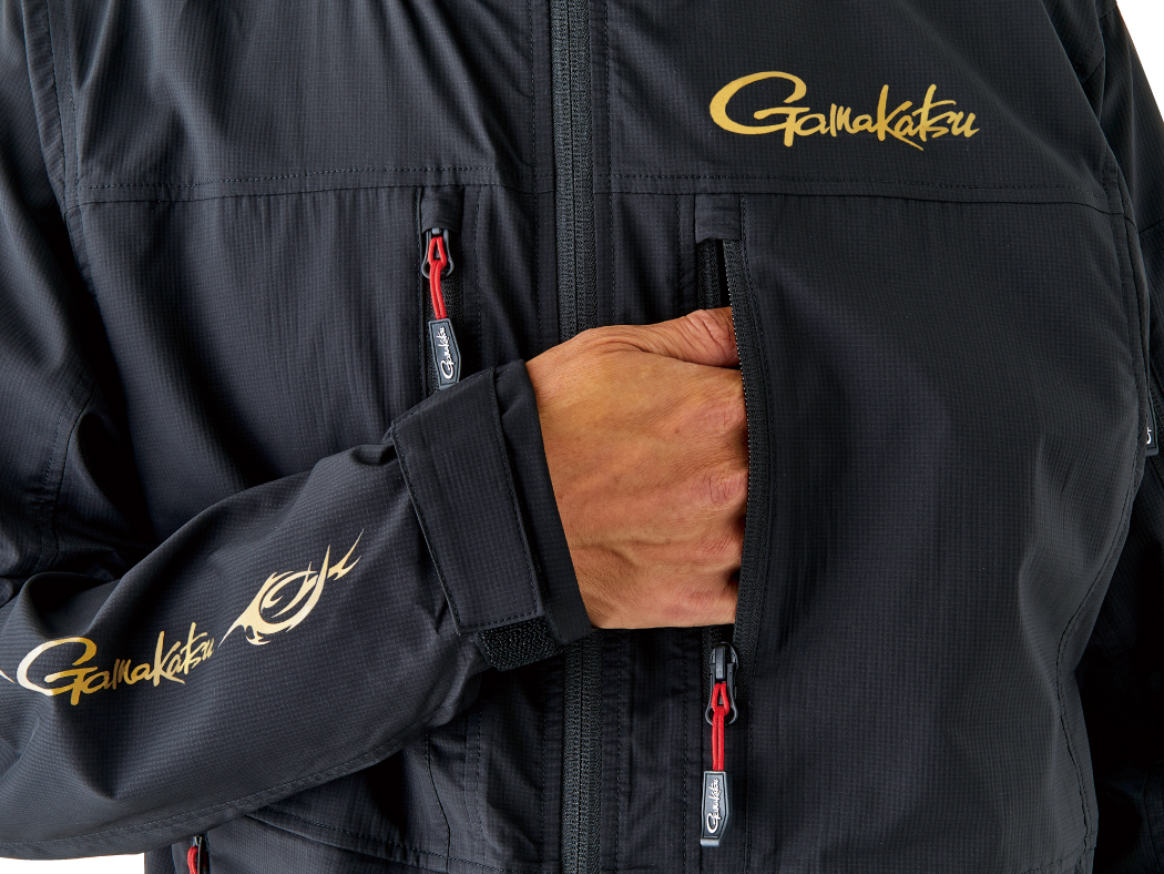 ●フロントには胸ポケット×2個、脇ポケット×2個を採用。袖にもファスナー付ポケットを配置し高い収納力です。