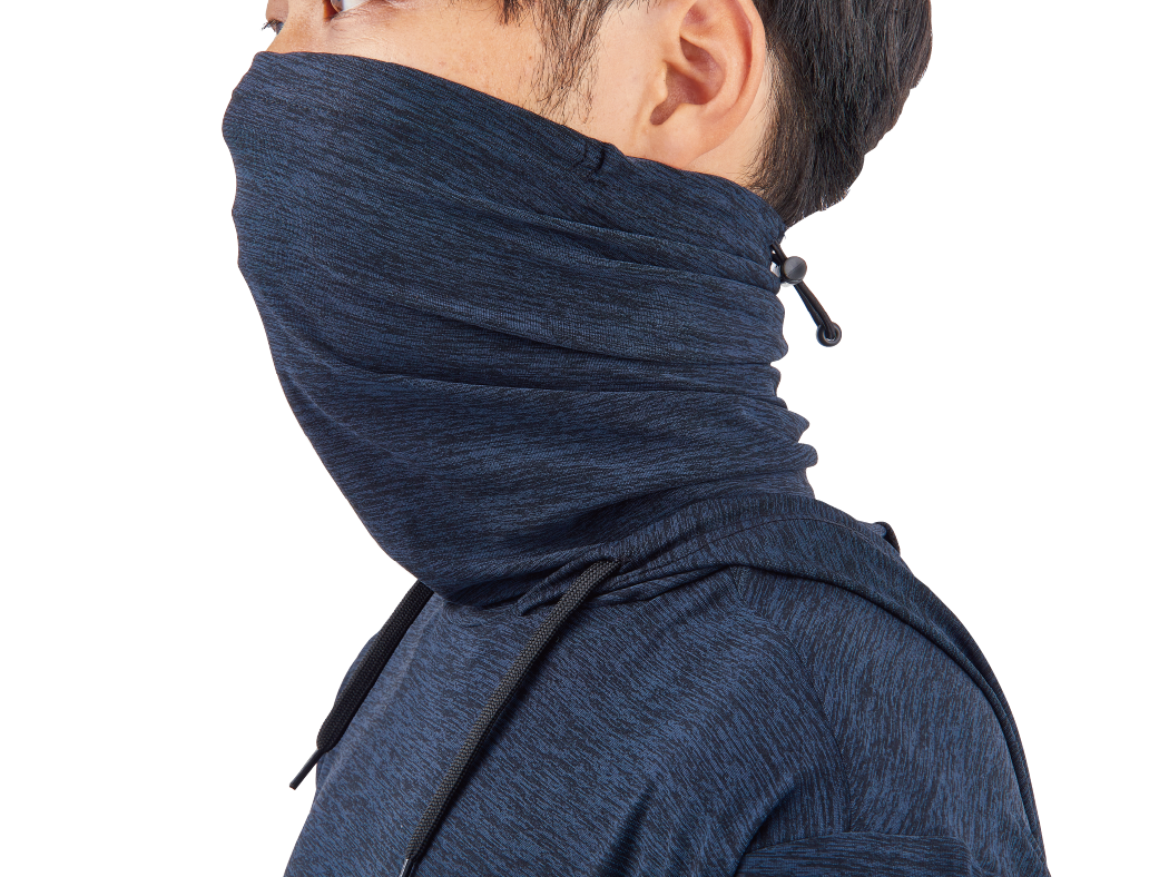 ●フェイスガードは後部ゴムスピンドルでフィット感を調整可能。フードはアジャスト用ドローコード付き。