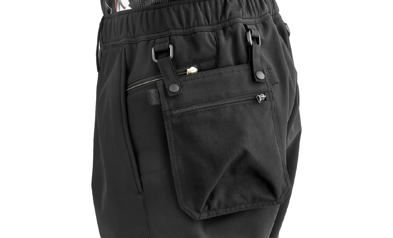 ポケット内にD環を配置。尻手ロープなどとつないでアイテムの落下を防ぎます。