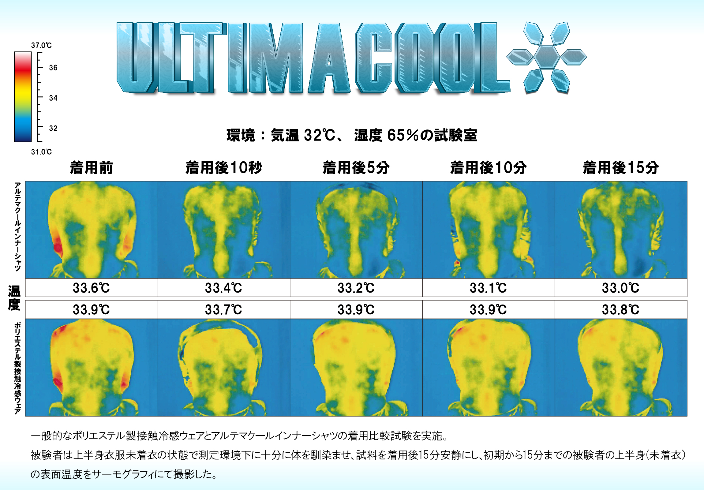 ●一般的なポリエステル製接触冷感ウェアと比べて生地の温度が上がりにくく冷感をキープします。