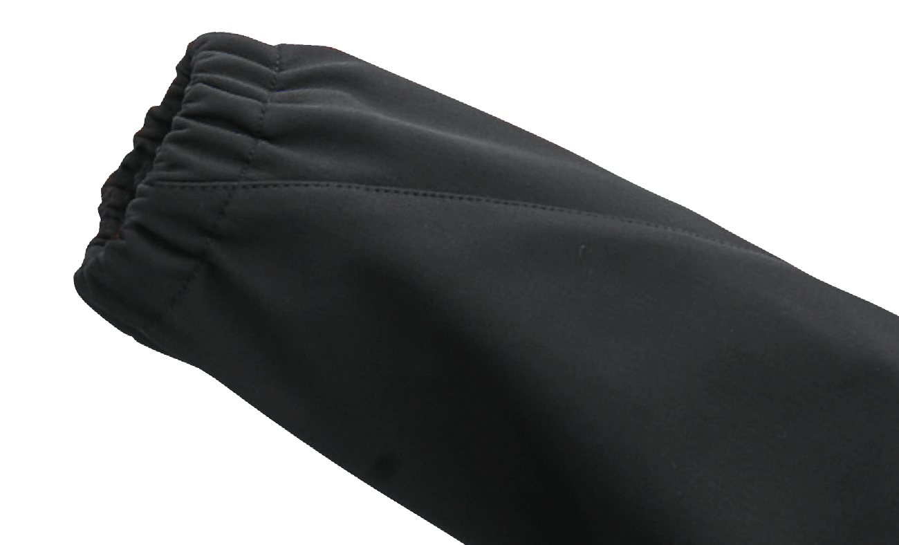 ●袖口はゴムシャーリングでソフトなフィット感。レインスーツの中に着用した際、袖口のごわつきを軽減します。