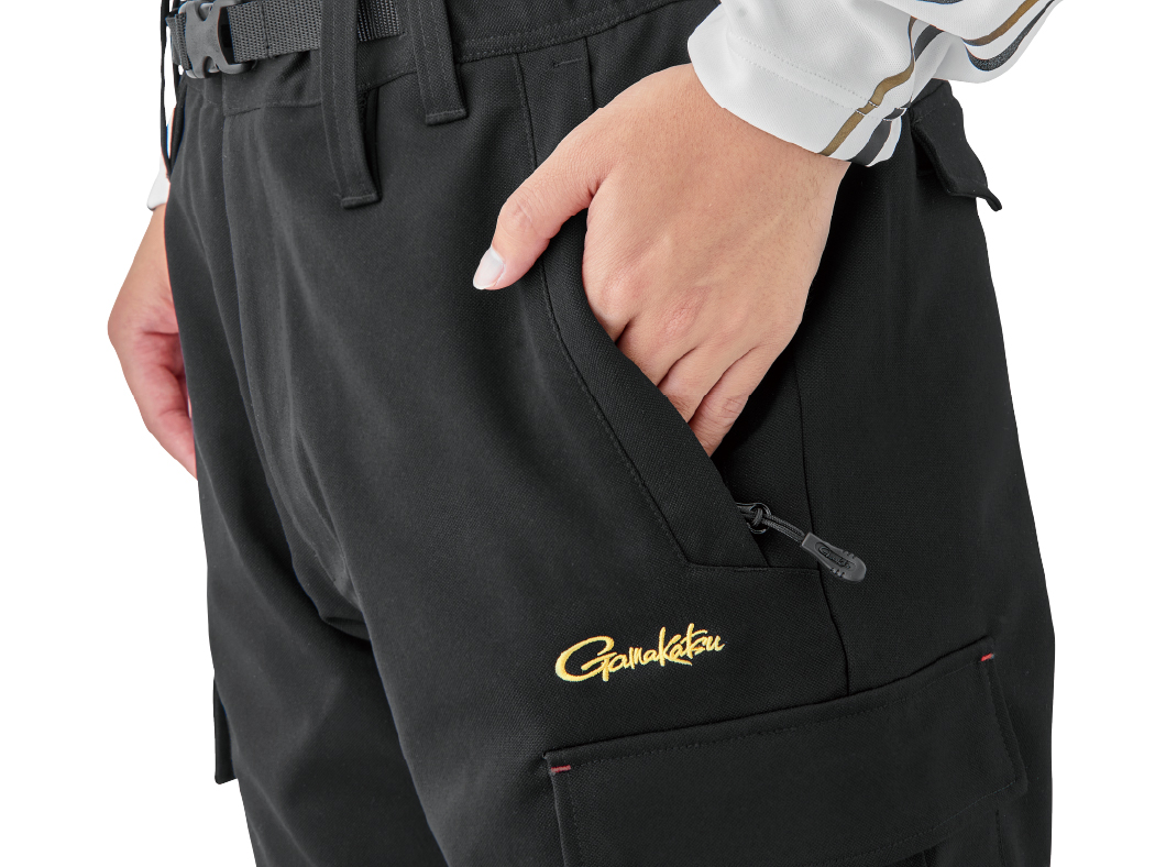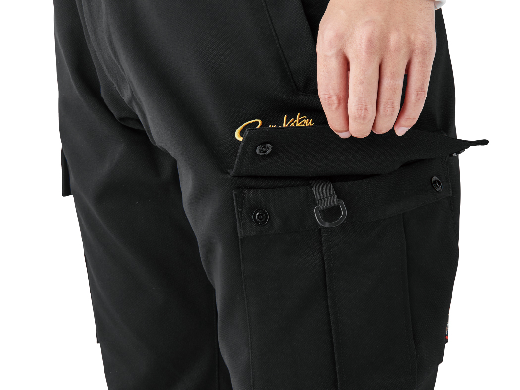 ●両サイドには大型カーゴポケットを配置。ポケット内にはD環を装備し尻手ロープなどと接続して使えます。