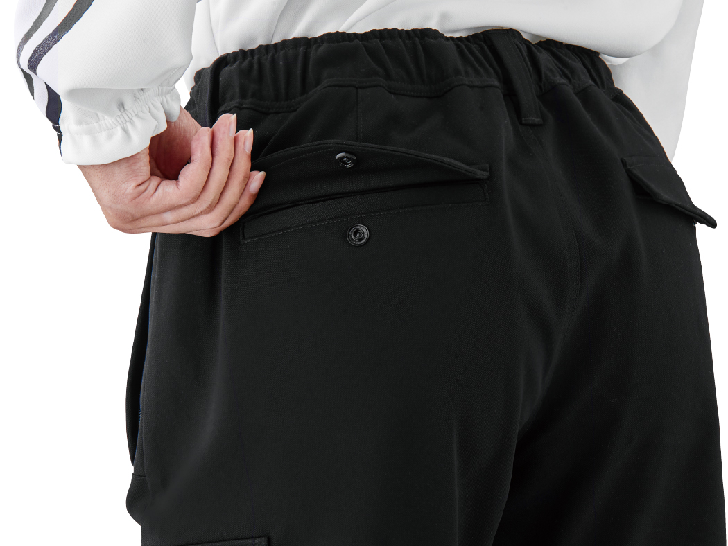 ●撥水加工を施したストレッチ生地を採用。3Dカッティングで動きやすいパターン設計です。