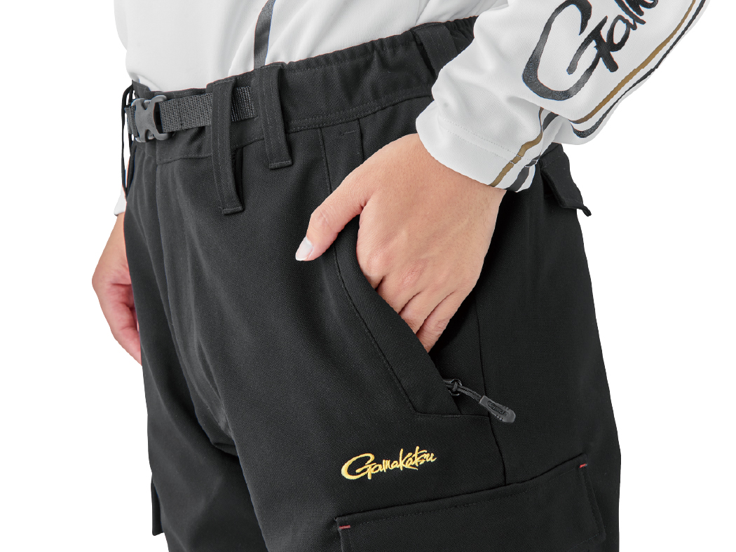 ウエストはゴムシャーリングとアジャスターベルトでしっかりフィット。ヒップガード対応ベルトループ付。
