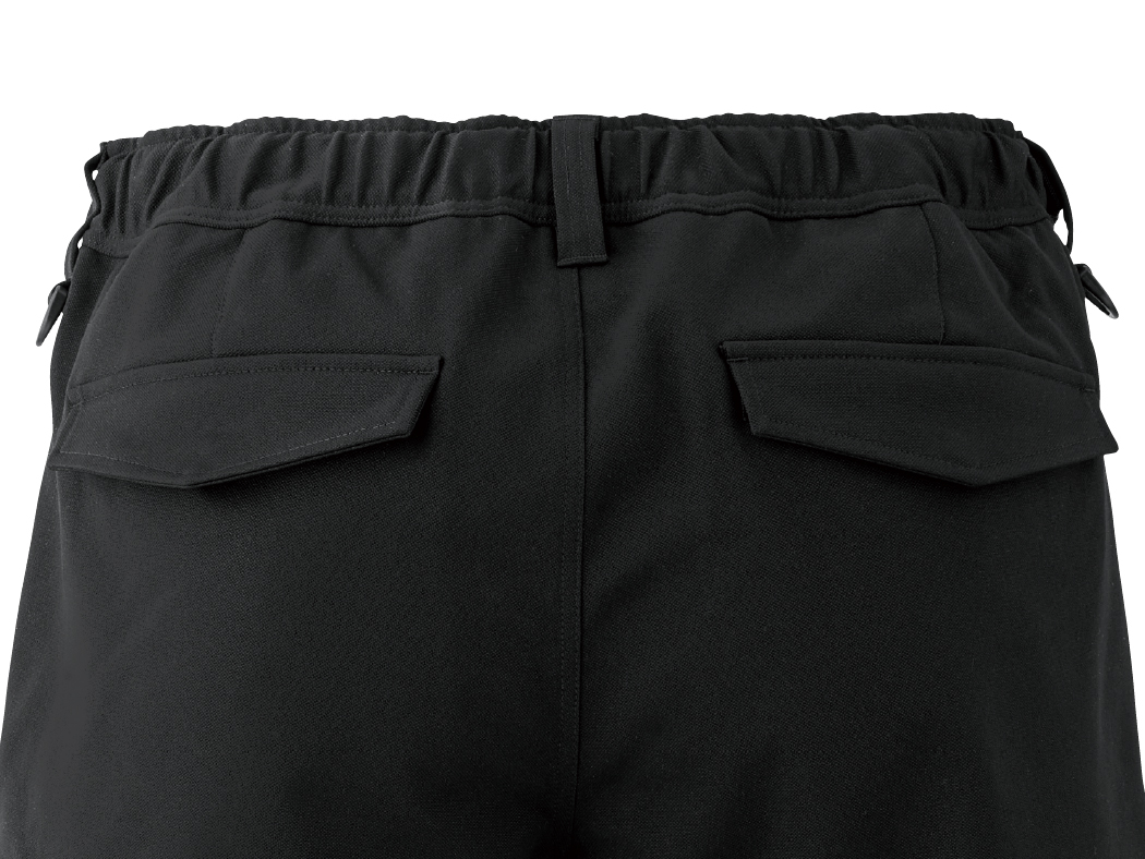 ●撥水加工を施したストレッチ生地を採用。3Dカッティングで動きやすいパターン設計です。
