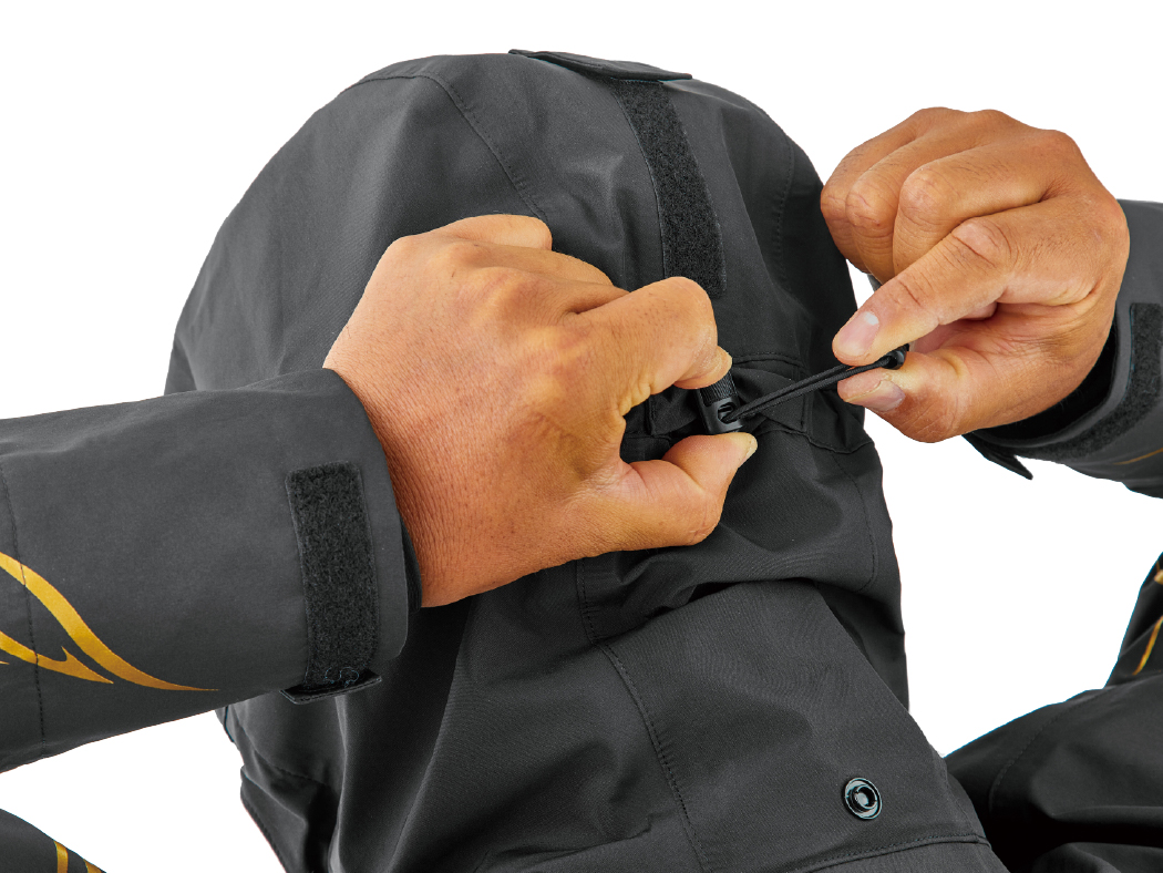 ●ジャケット袖口部は新構造のダブルカフスを採用し、雨天での釣行時でも袖口からの雨の侵入を減少させます。