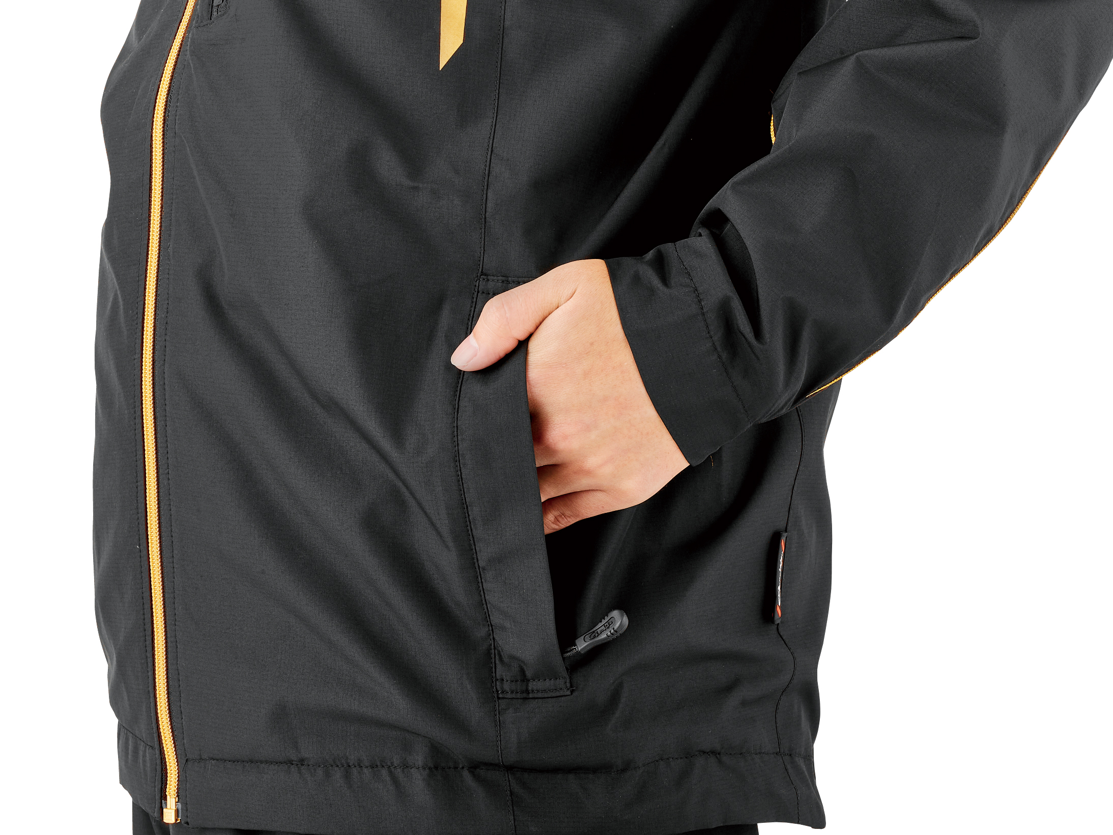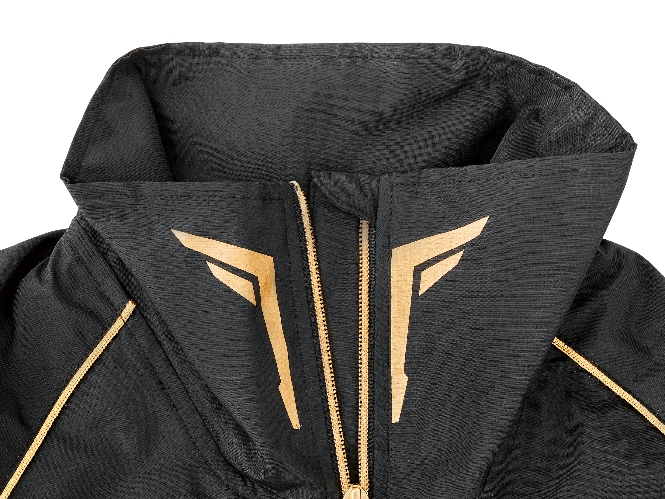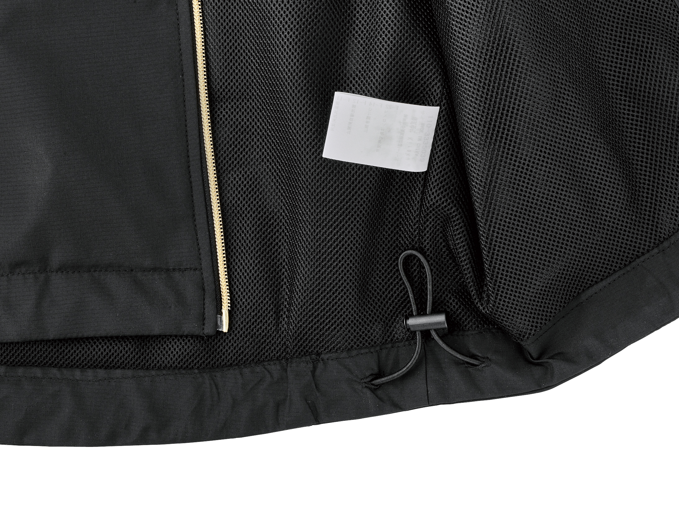 ファスナースライダー裏側が直接首に当たらないよう処理を施したチンガード付。
