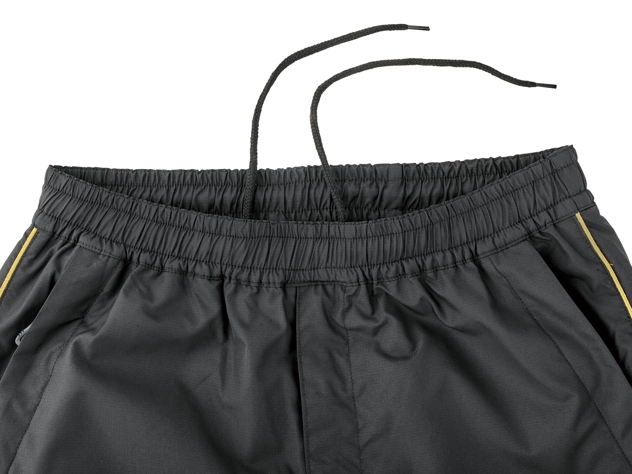 ゴムシャーリングと紐でウエストにしっかりフィット。