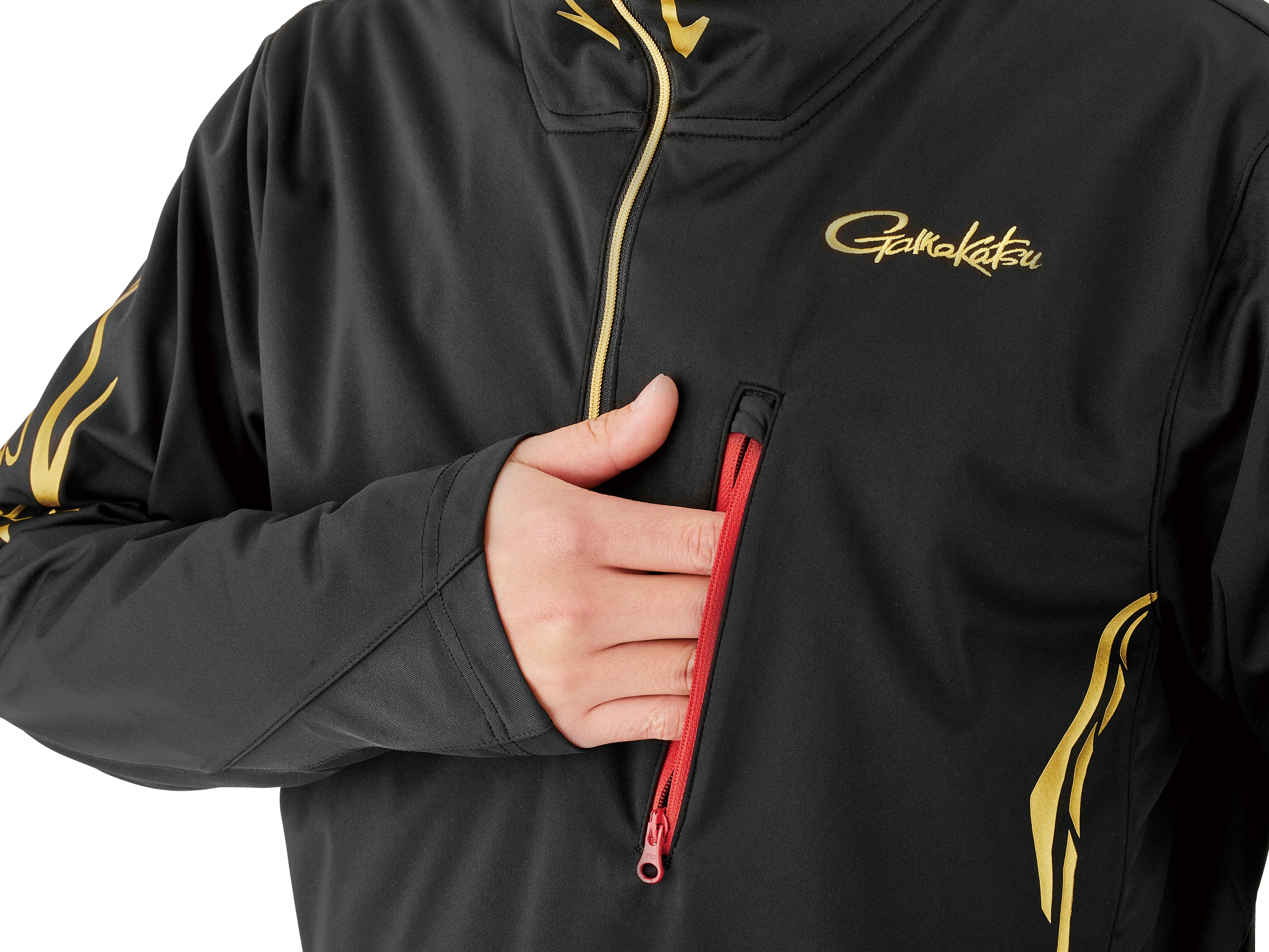ファスナー付胸ポケット。