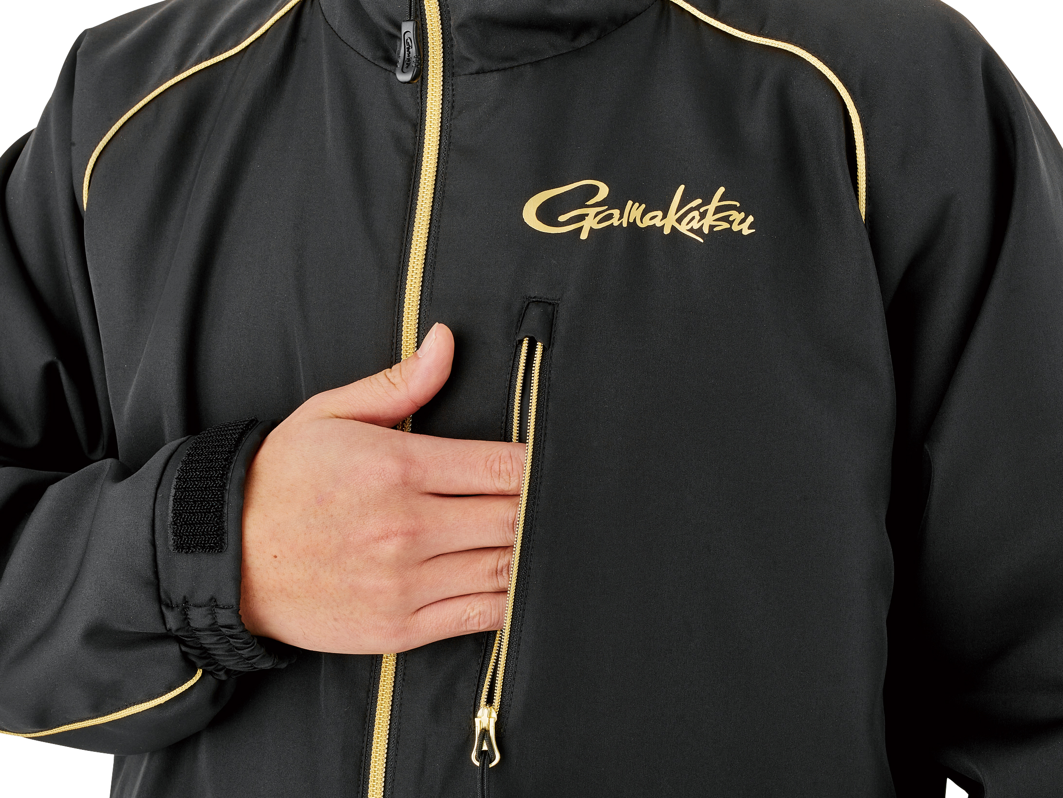ファスナースライダー裏側が直接首に当たらないよう処理を施したチンガード付。