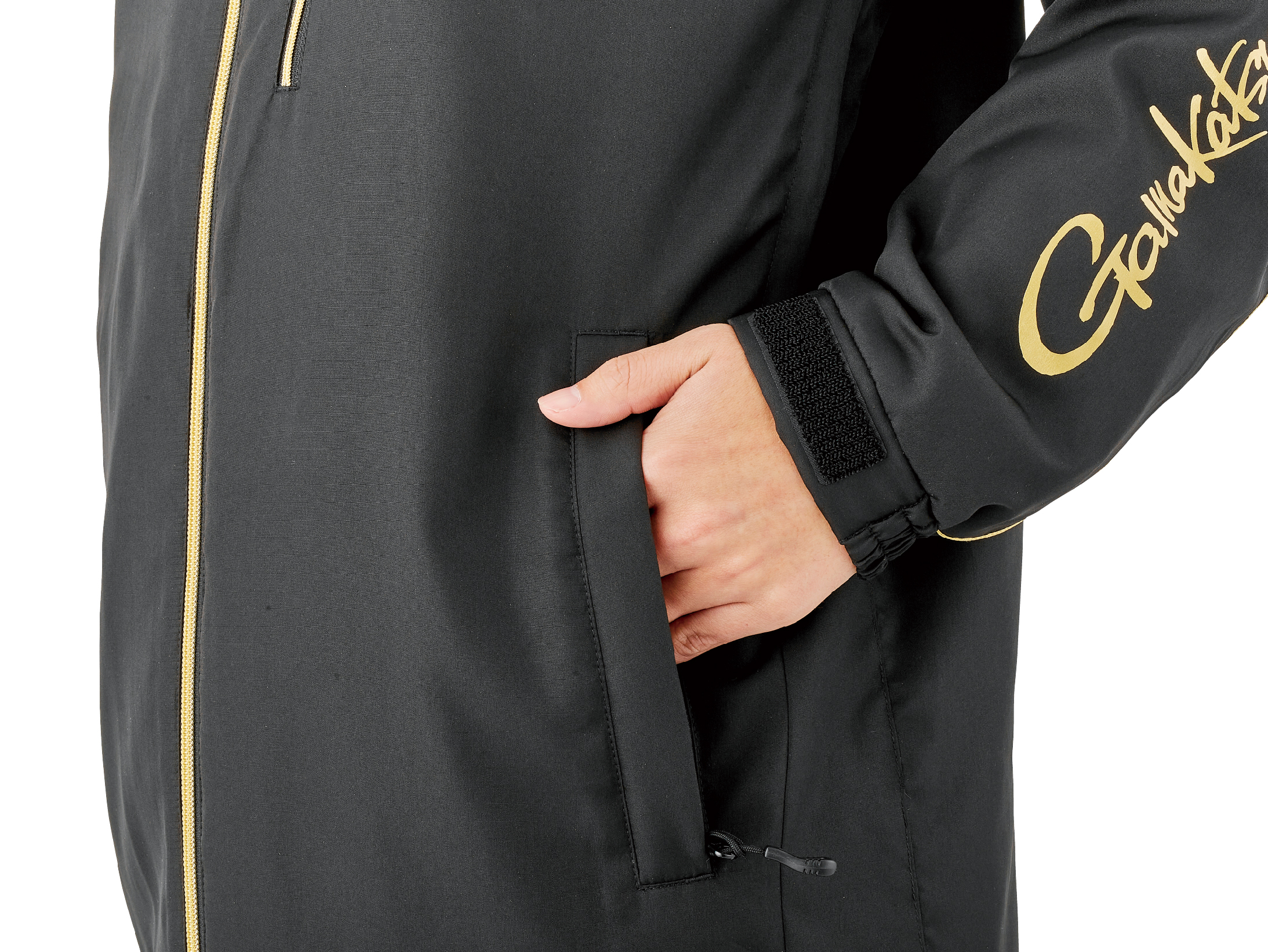 袖カフス+面ファスナーアジャスターシステムを備えた袖口。