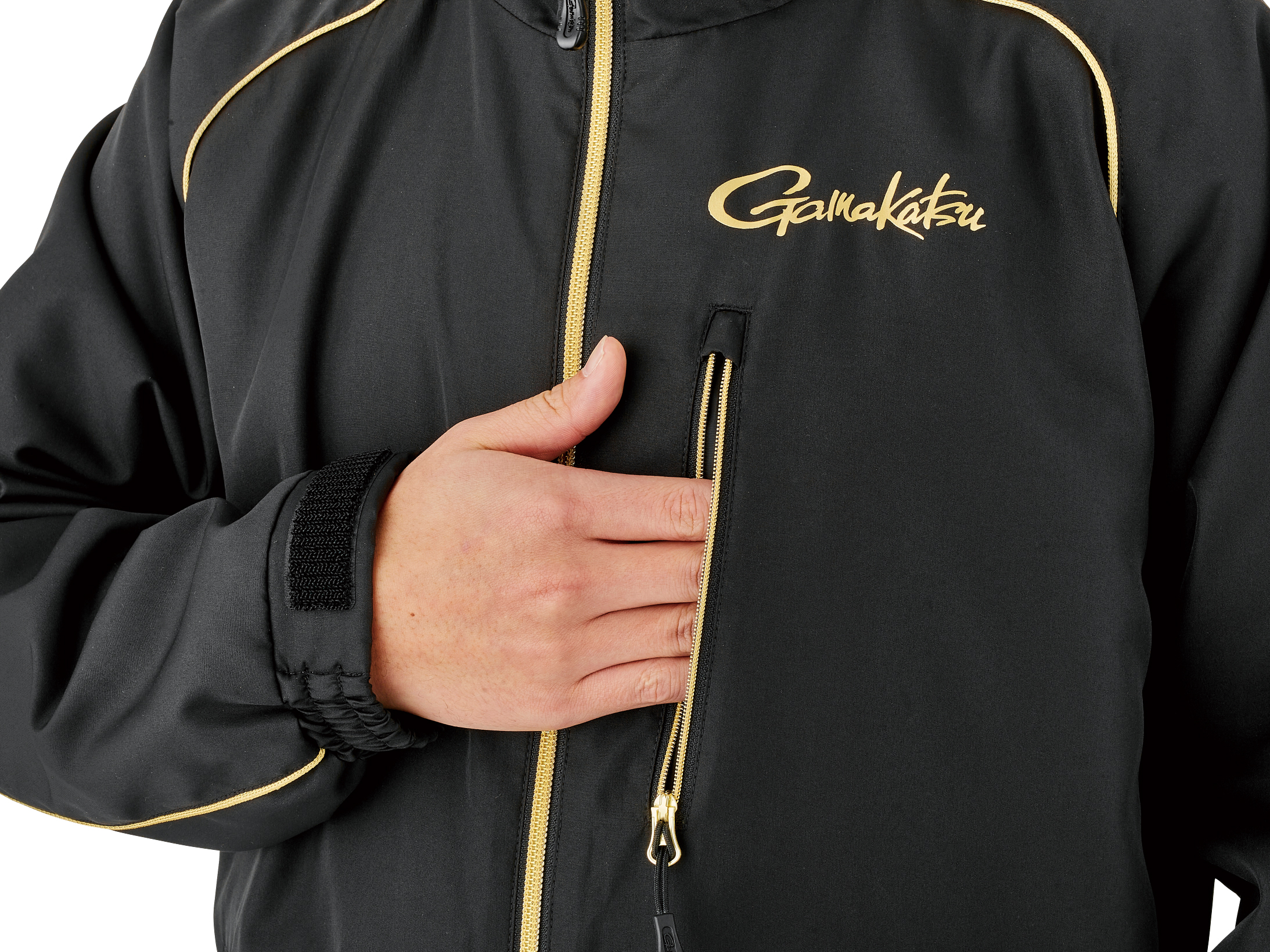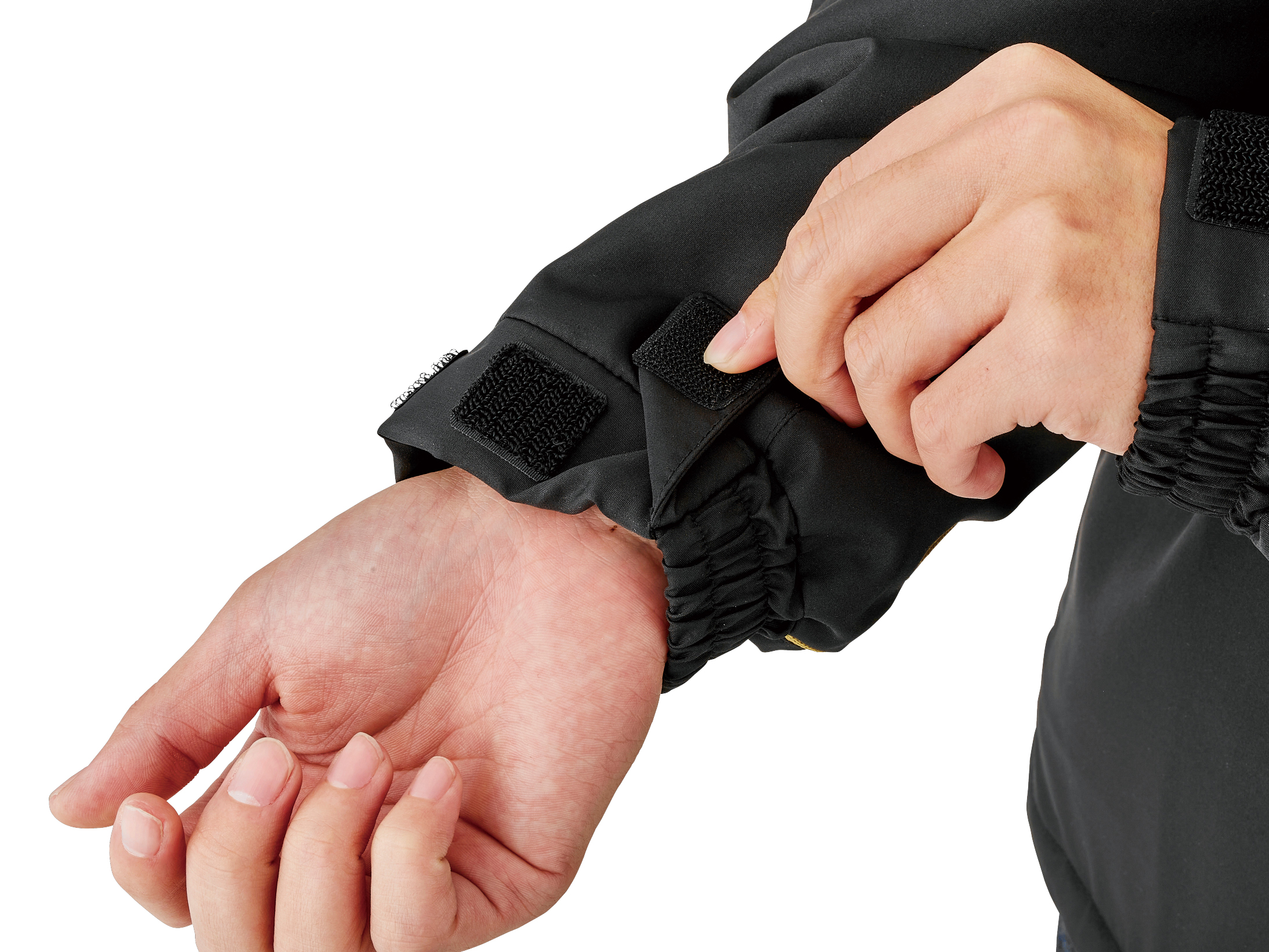 袖カフス+面ファスナーアジャスターシステムを備えた袖口。