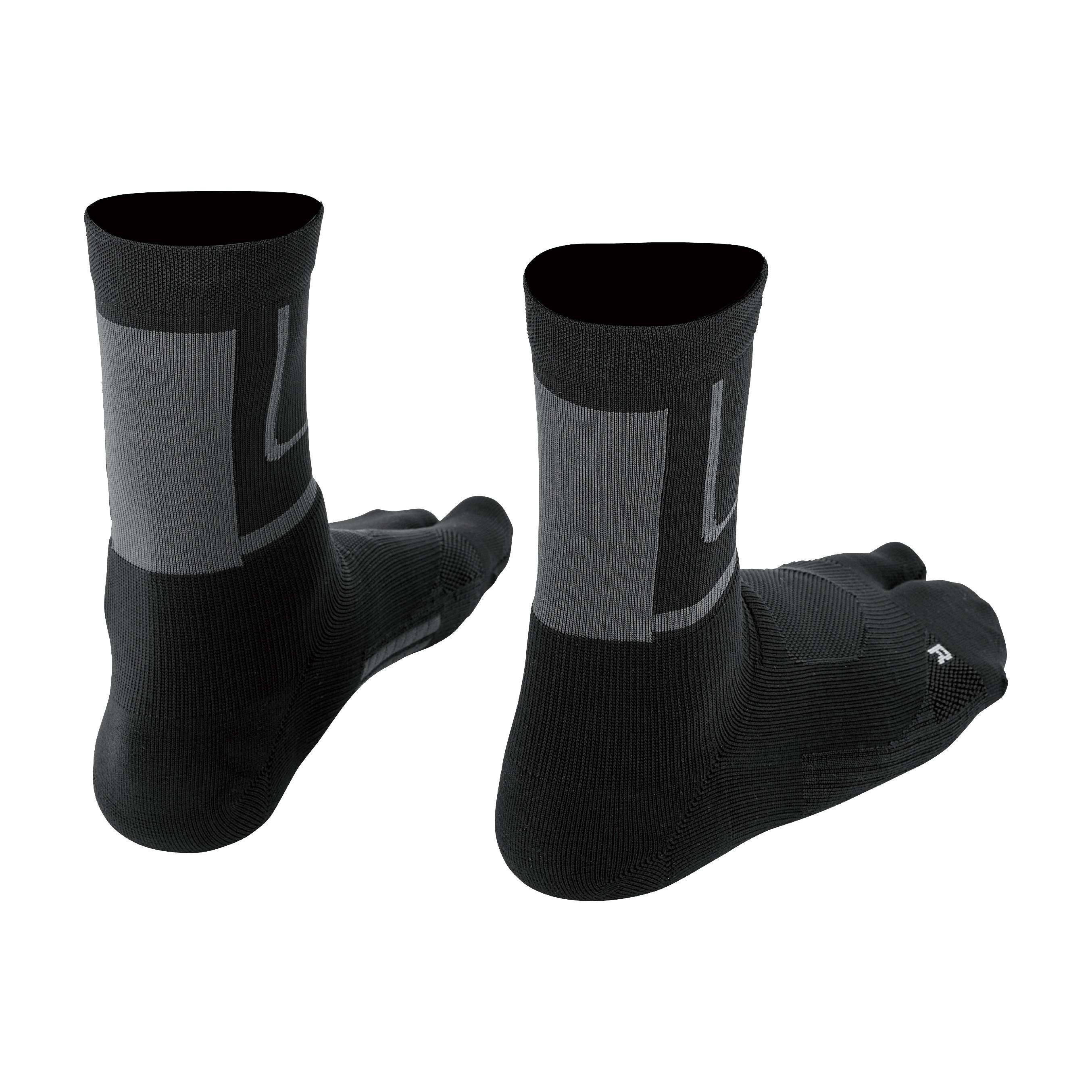●足首はテーピングサポート編みで可動部を包むようにホールドし、足首のぐらつきを抑えます。