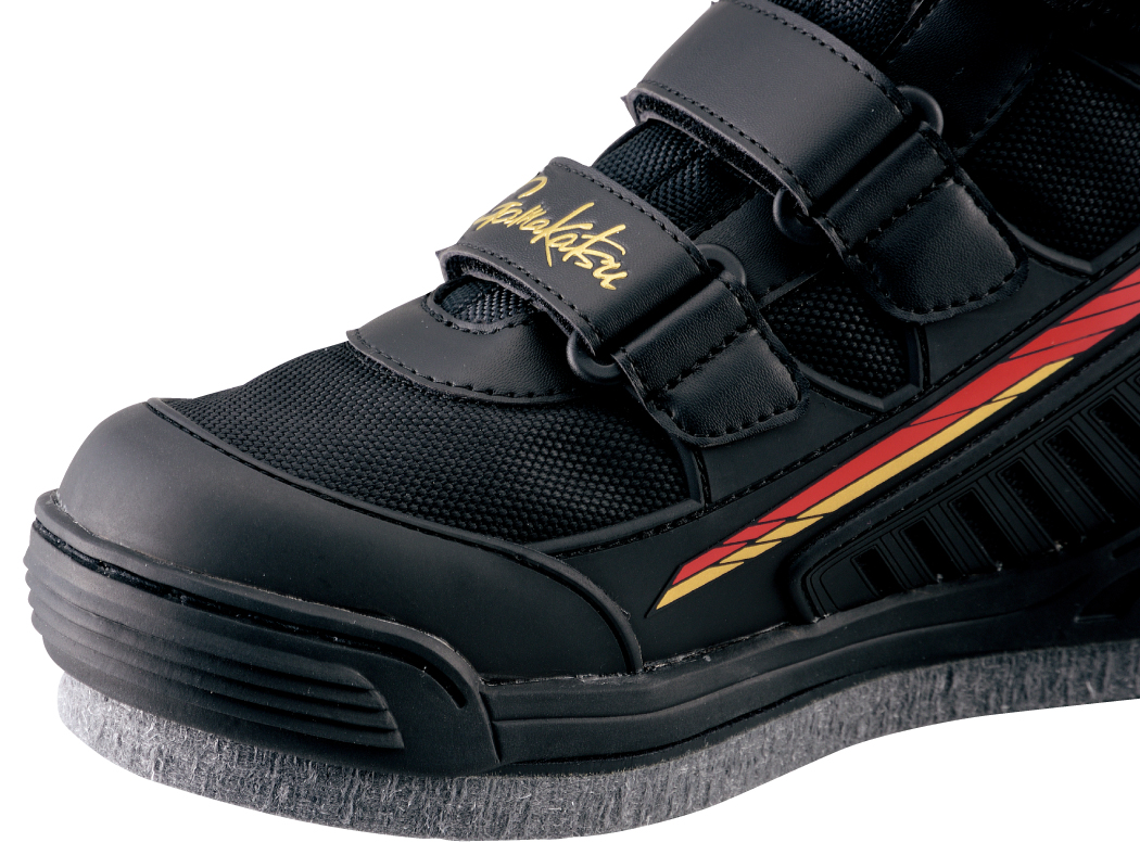 ●ソールはフェルト素材をベースにスパイクピンを配置。様々な条件の川底を的確にグリップし、滑りを抑え、安全性を高めます。