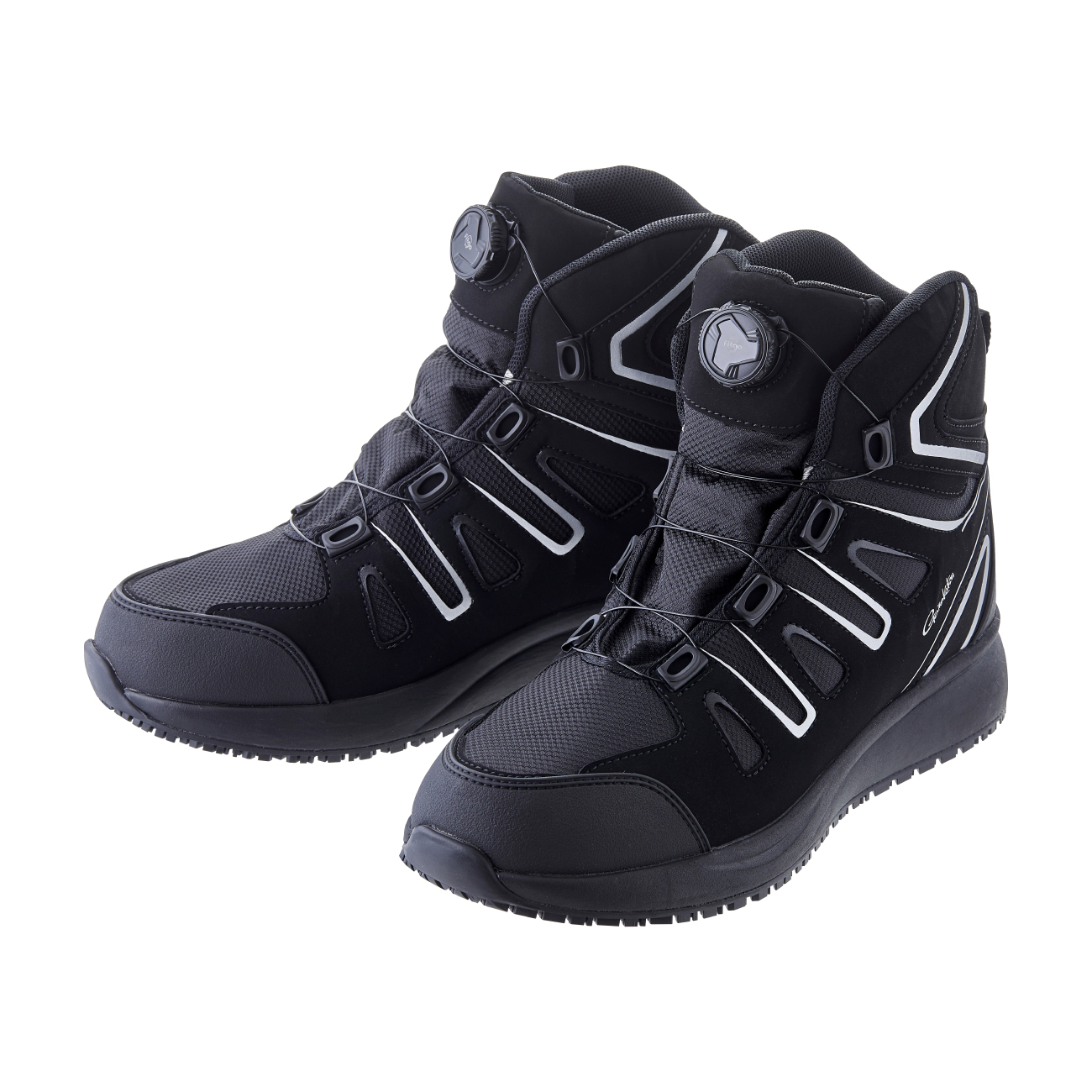 ●ワイヤーによりシューズ全体を包み込むように均等に締め付け、高いフィット感を実現。釣行中に長時間着用してもワイヤーの効果で足の動きにフィットし、安定した甲部から足首までのホールド感を持続します。