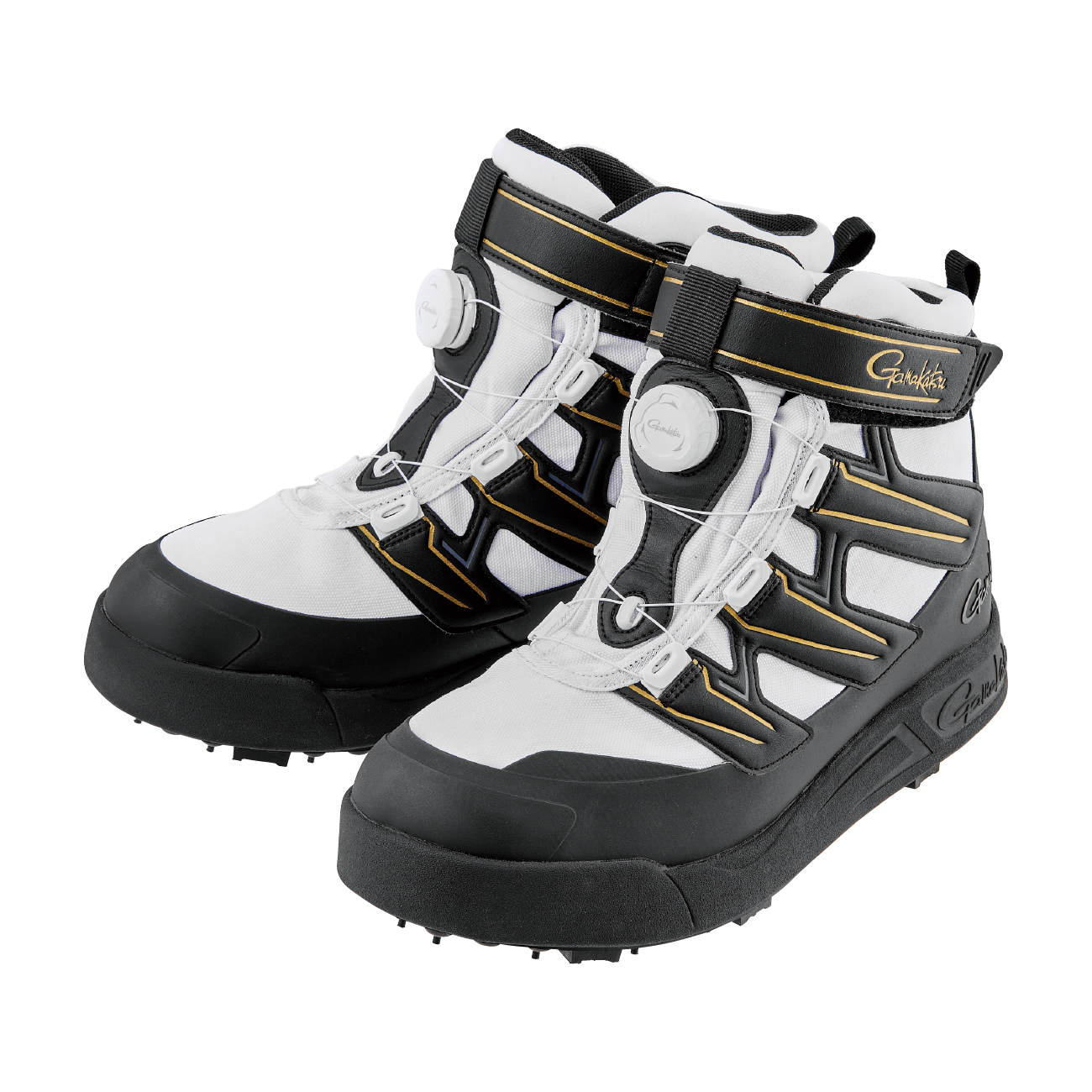 ●ワイヤーによりシューズ全体を包み込むように均等に締め付け、高いフィット感を実現。磯場などで長時間着用してもワイヤーの効果で足の動きにフィットし、安定した甲部から足首までのホールド感を持続します。ダイヤル操作にすることによりミリ単位の細かい調整が可能。時期、状況に合わせて最適なフィット&ホールド感を実現します。ダイヤルを引き上げることで、解除が可能。
