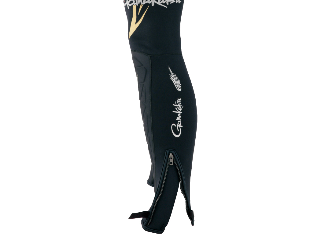 ●3mm厚のクロロプレンを採用することにより、立ち込んだ際にも体をしっかりと保温します。また、クロロプレンの伸縮性は釣行時に発生する、ポイント移動時の歩行運動、オトリ交換の際の屈伸運動などの動作を妨げません。