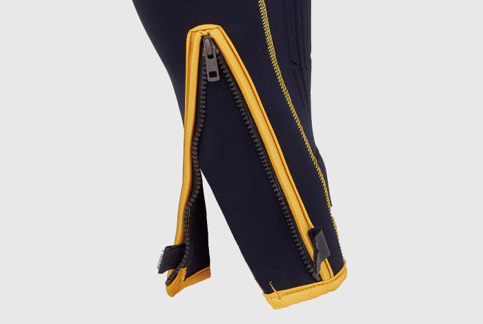 ● 伸縮性の違う2種のクロロプレンを採用し、身体へのフィットは抜群。新立体裁断を合わせることによりワンランク上の機動性を実現。
