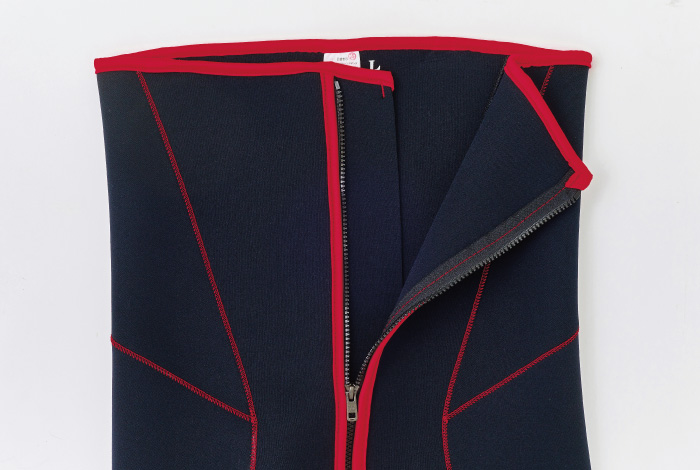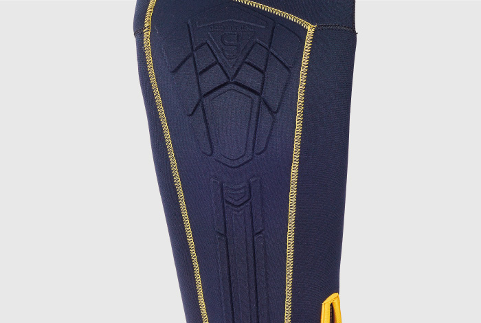 ● 本体には伸縮性の違う2種のクロロプレンを採用し、身体へのフィットは抜群。新立体裁断を合わせることによりワンランク上の機動性を実現。