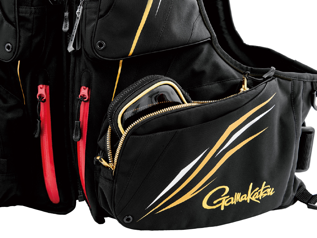 ●面ファスナー付ポケットを胸と腰それぞれに配置し、使い終わった糸や鈎などの収納にも便利。