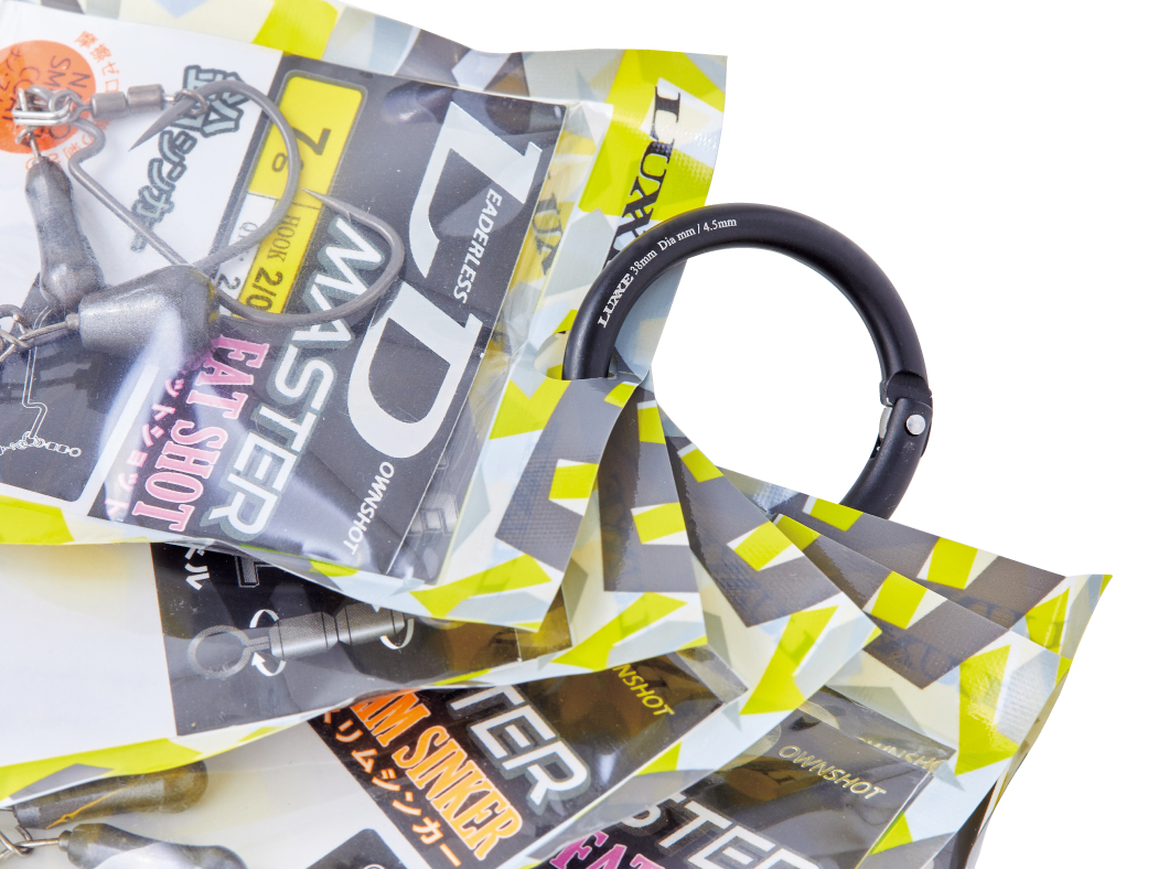 ●ワームフック、ジグヘッド、シンカー等をパッケージのまま束ねて収納。