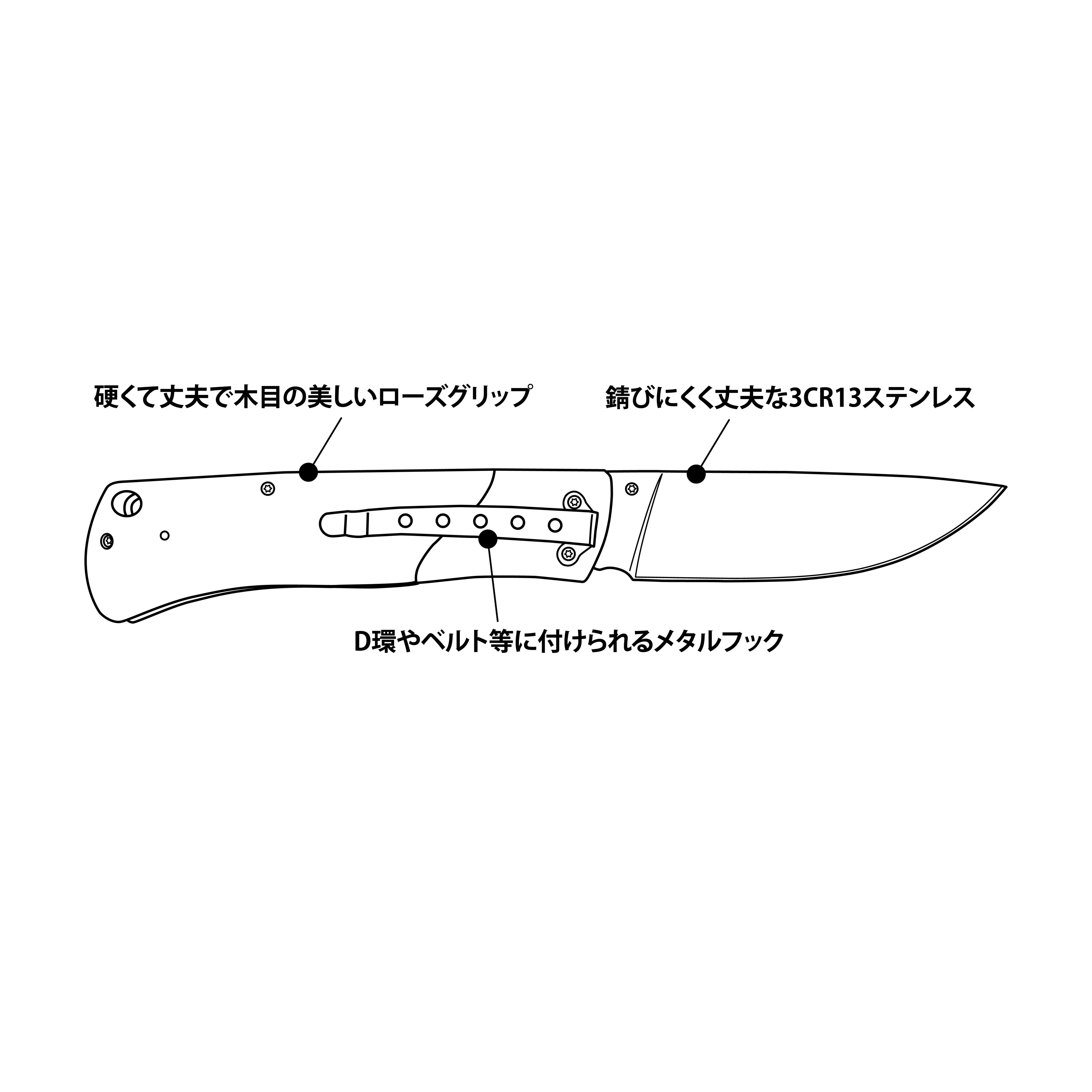 ●硬くて丈夫で美しい木目のローズウッドハンドル。