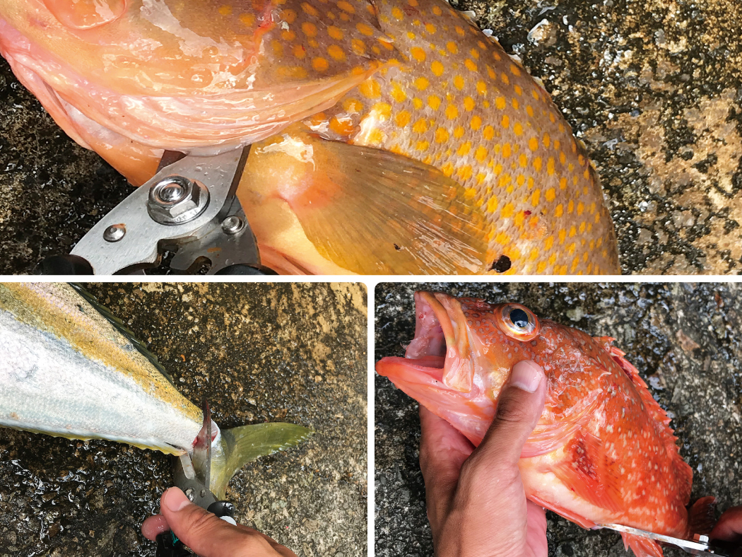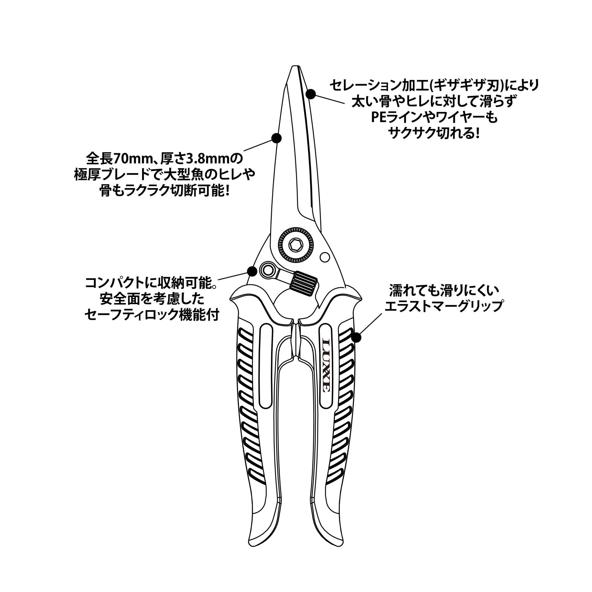 セレーション加工により太い骨やヒレにも滑らず、PEラインやワイヤーもサクサク切れる。