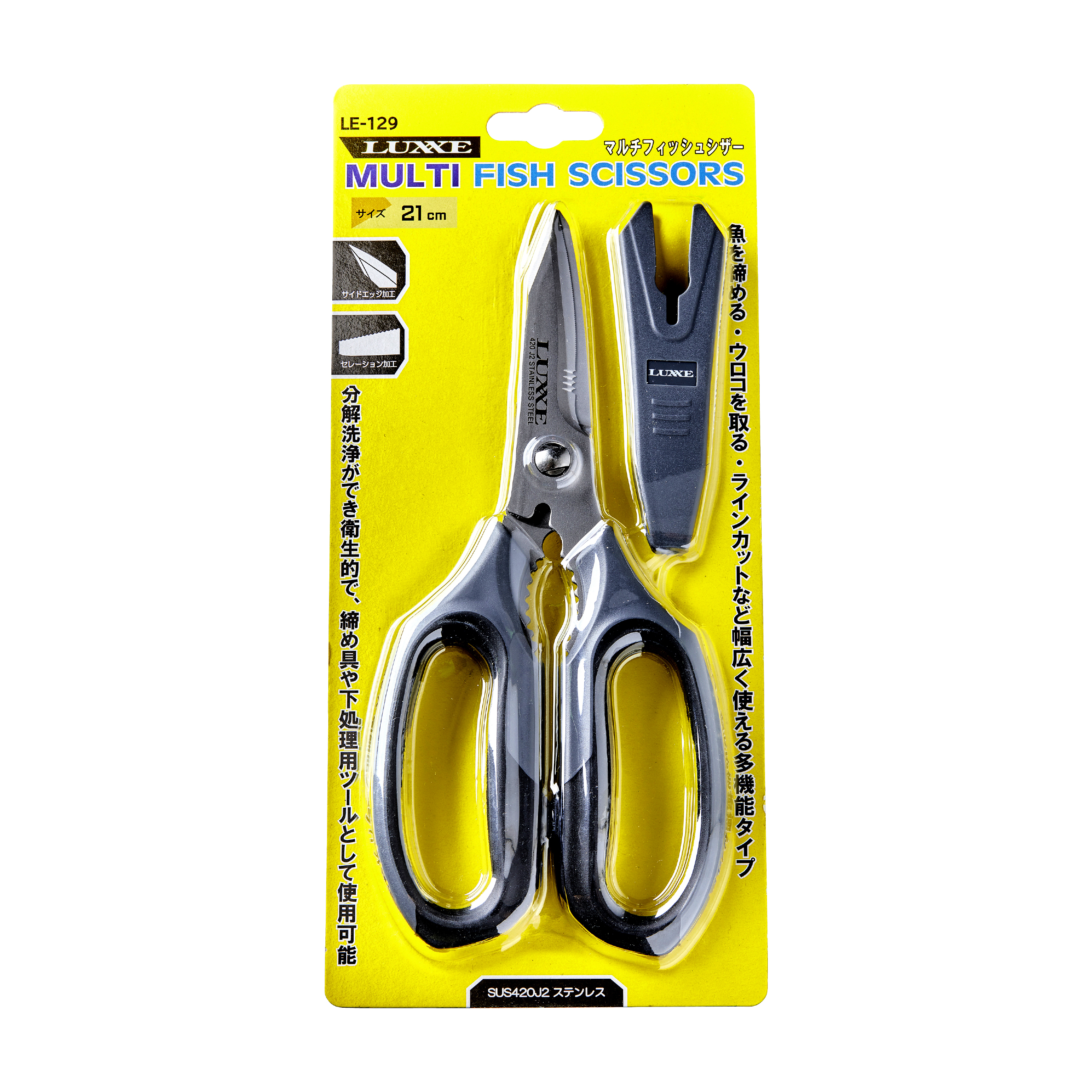分解洗浄ができ衛生的で、締め具や下処理用ツールとして魚を締める・ウロコを取る・ラインカットなど幅広く使える多機能タイプのシザー。