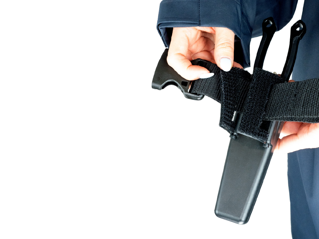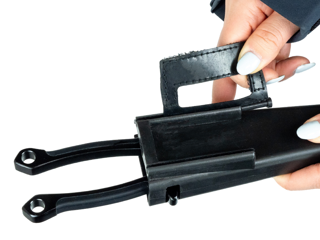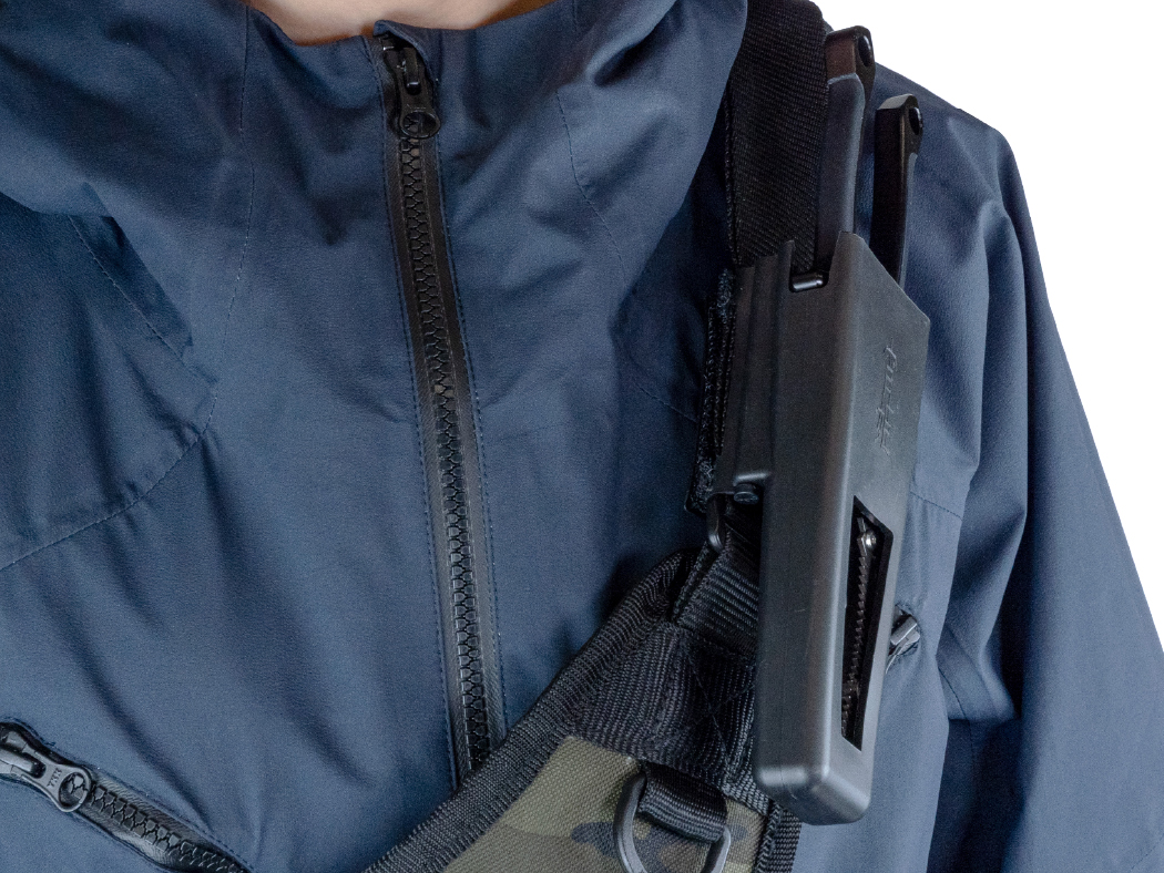 フラップ式面ファスナーで、肩ベルトなどに簡単スピーディに脱着可能。