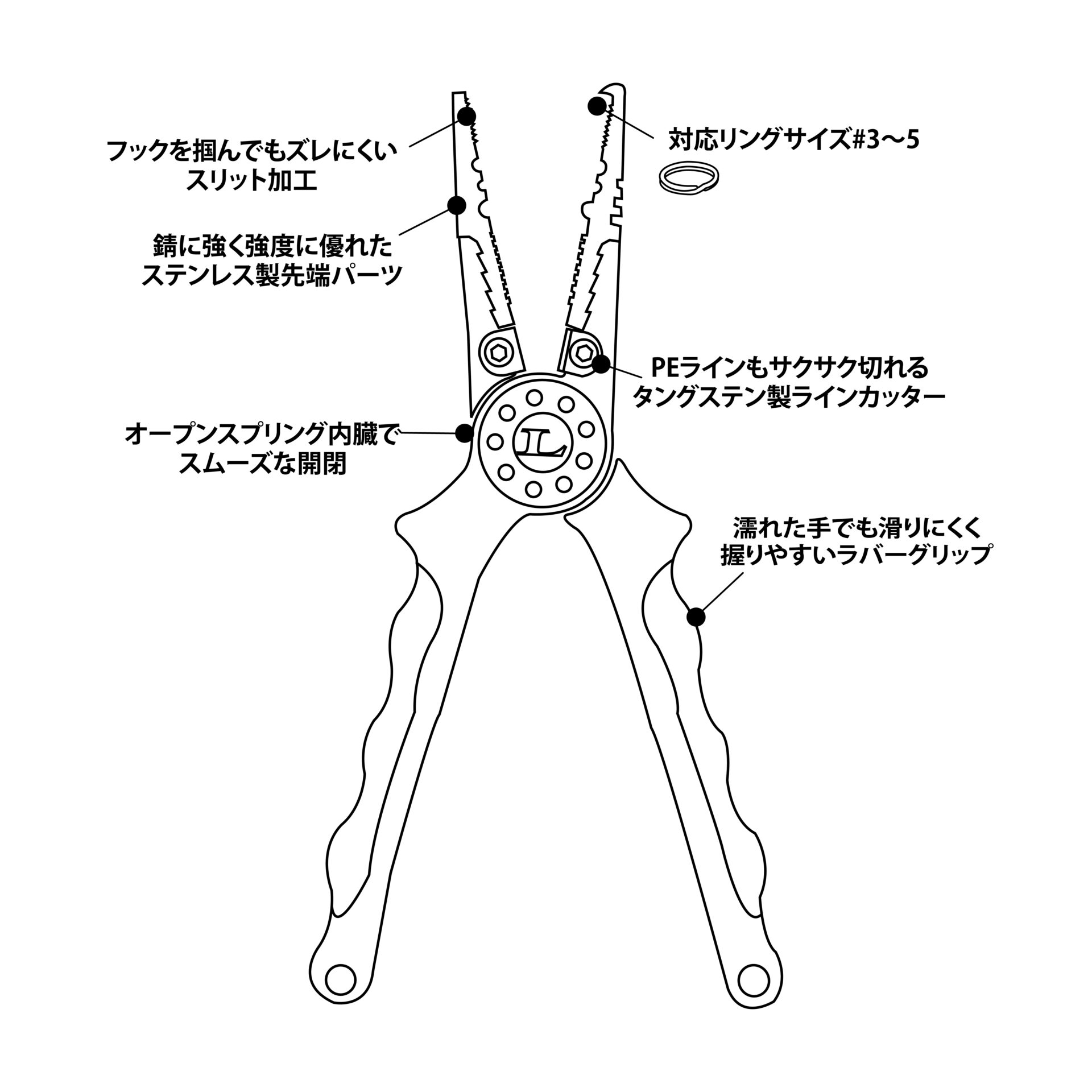 ノーズは錆に強いステンレス製でスプリットリングの素早い交換に便利なリングオープナー付。